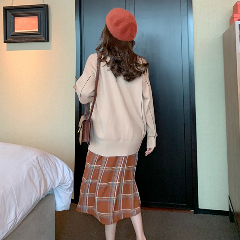 / 毛衣配裙子兩件套女秋裝新款長袖針織外套寬松中長碎花吊帶連衣裙