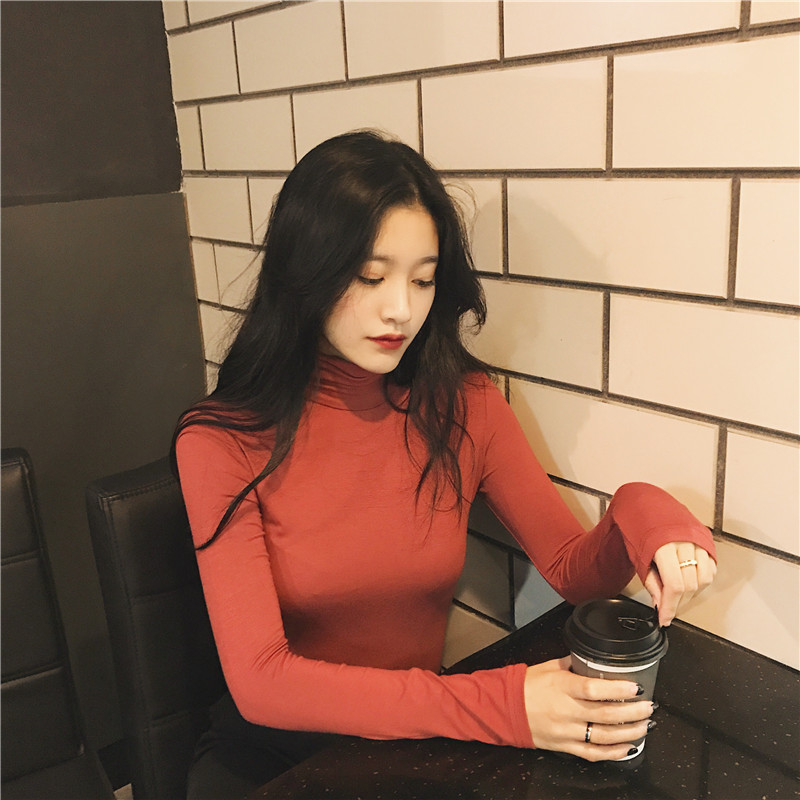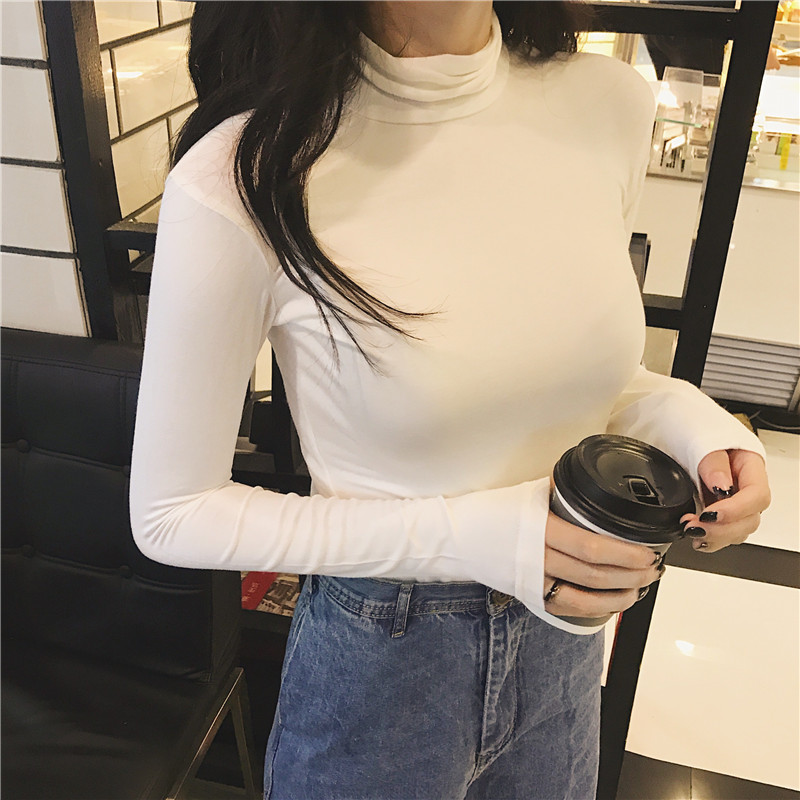 秋裝女2018新款韓版Chic基礎款氣質百搭顯瘦高領純色打底衫T恤潮