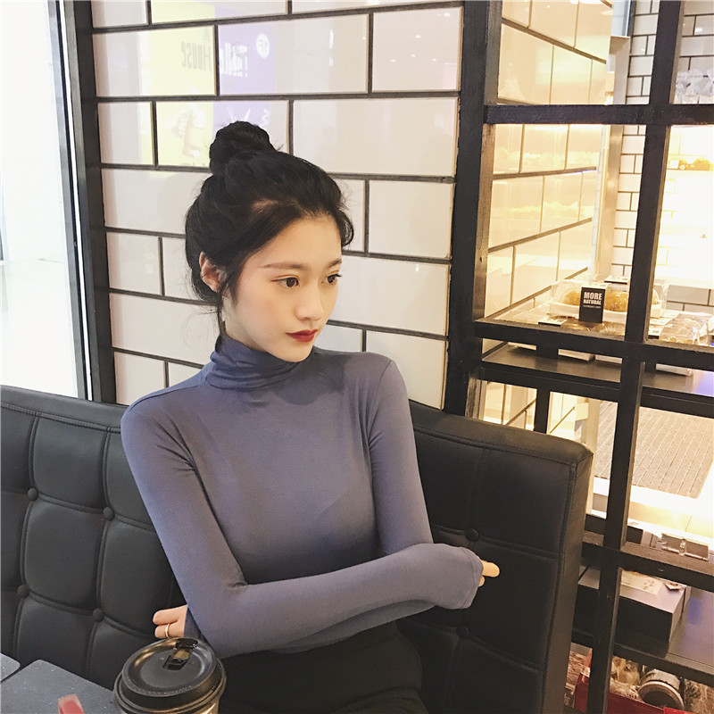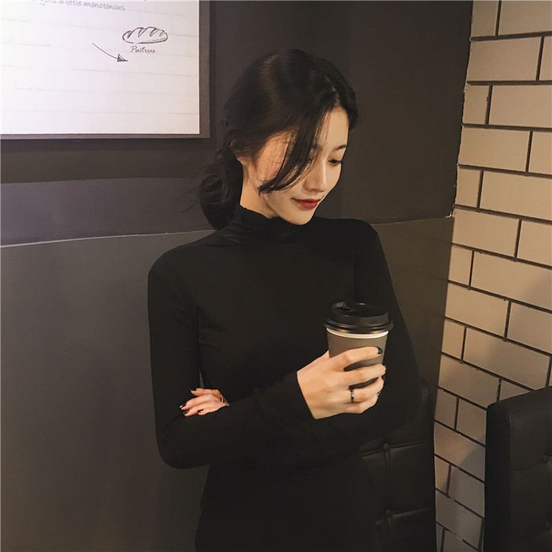 初秋上衣韓版修身顯瘦百搭長袖打底衫女T恤氣質高領親膚打底Tee潮