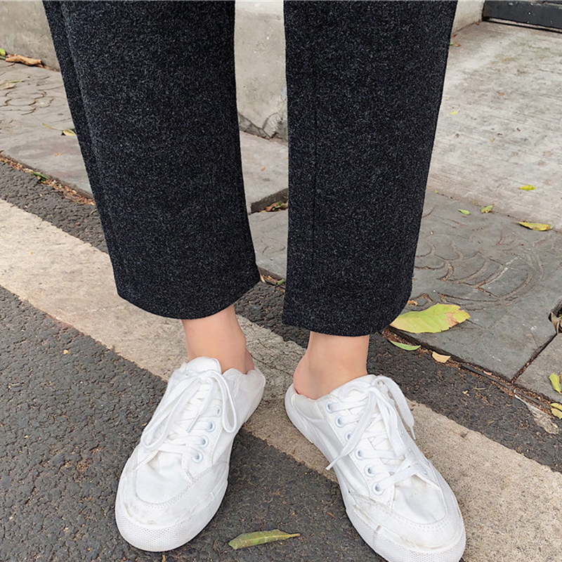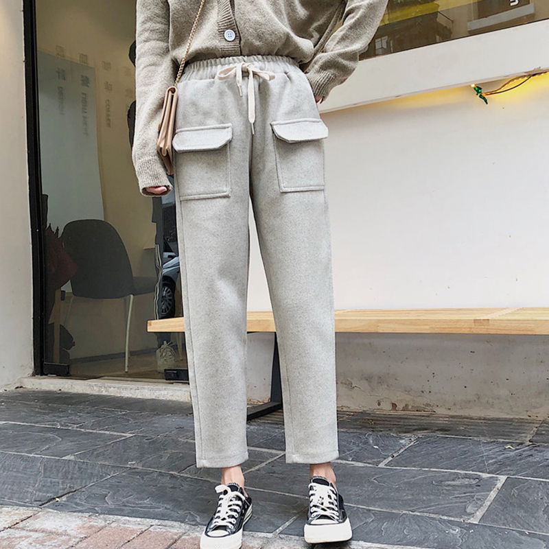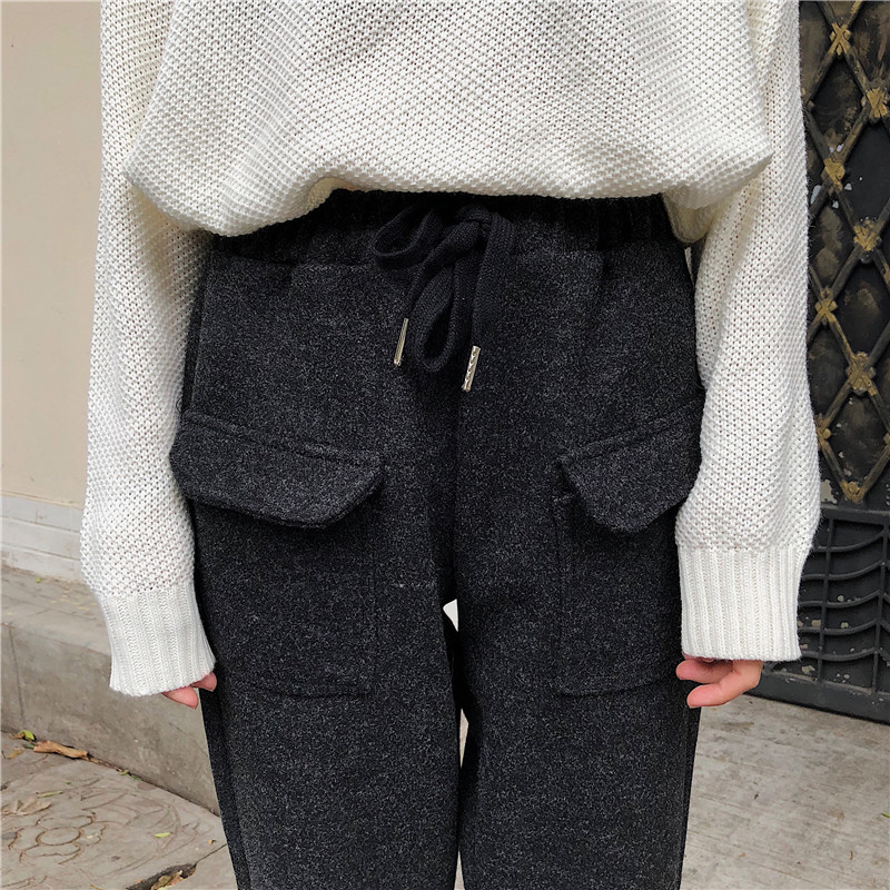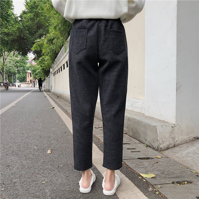 毛呢褲子女秋冬裝2018新款韓版松緊高腰哈倫褲百搭寬松顯瘦休閑褲
