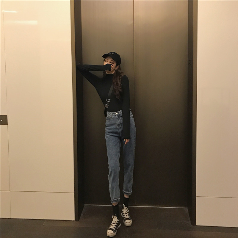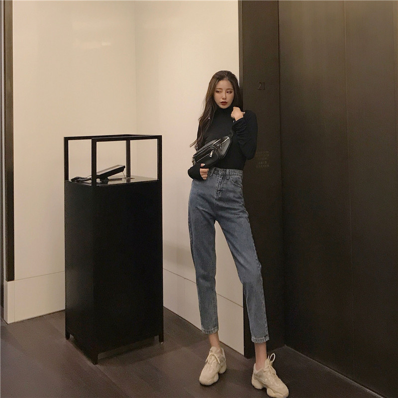 秋裝女2018新款復古港味九分褲學生韓版寬松高腰原宿直筒牛仔褲女