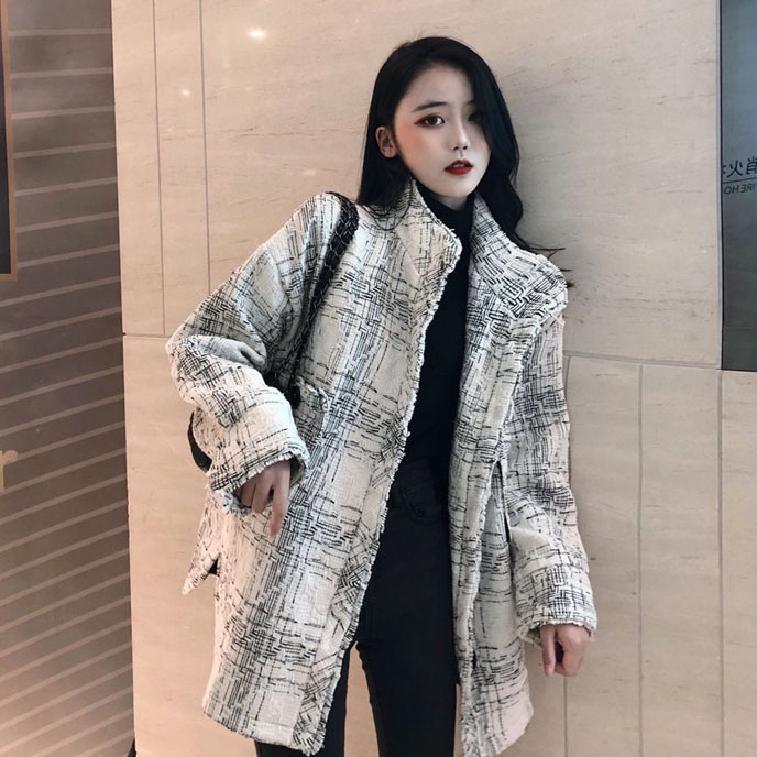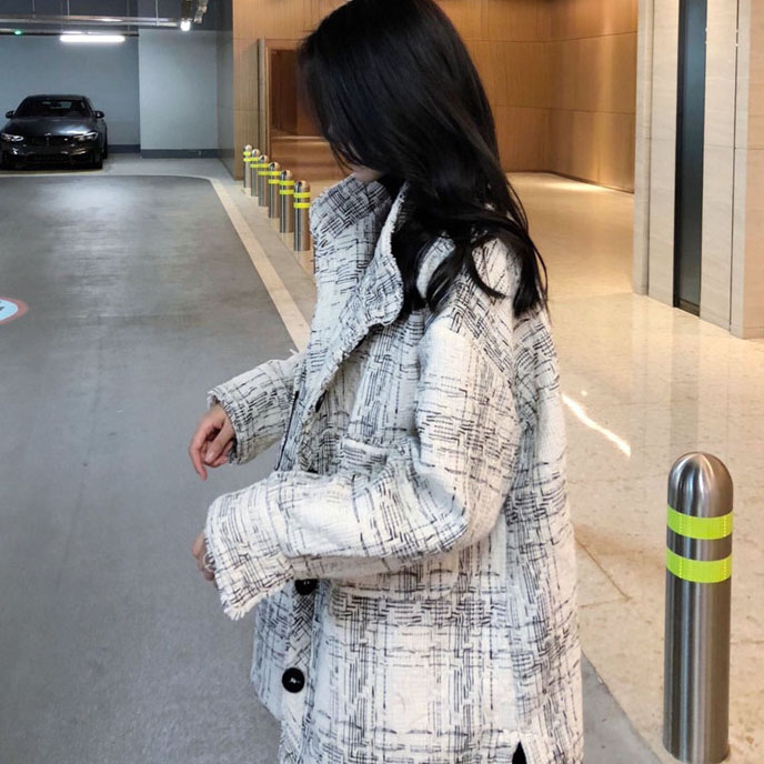 / 復古外套女春秋2018新款韓版百搭款寬松粗花呢中長款小香風外套潮