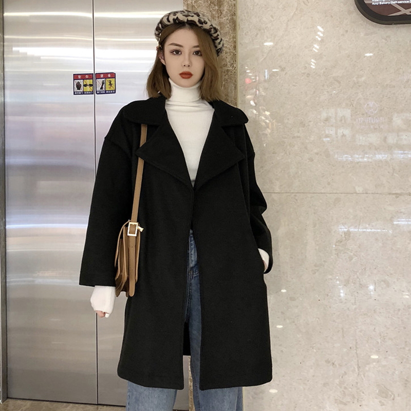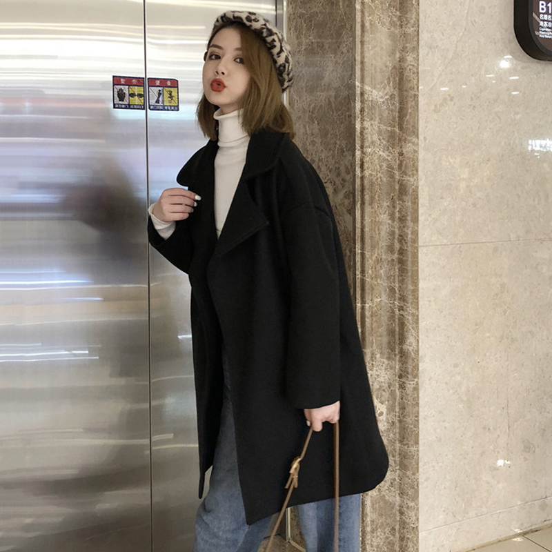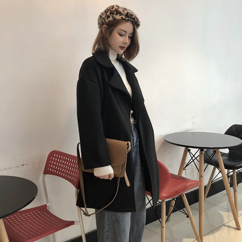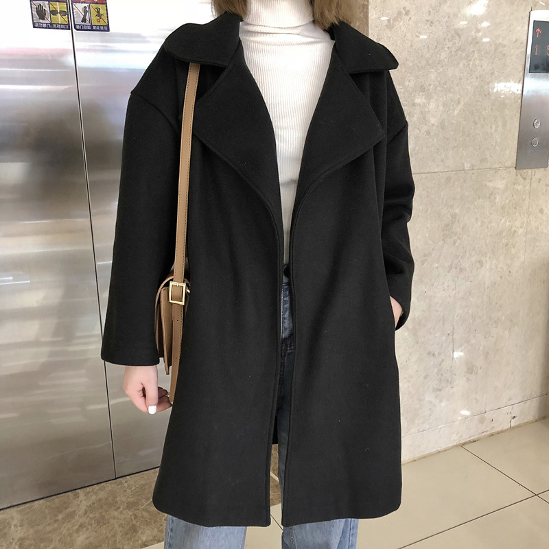 / 風衣女秋裝2018新款chic港風翻領開衫黑色長袖寬松休閑長款外套潮