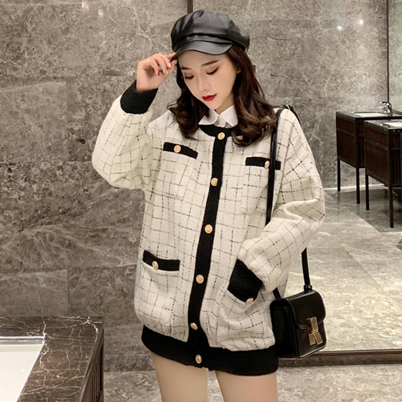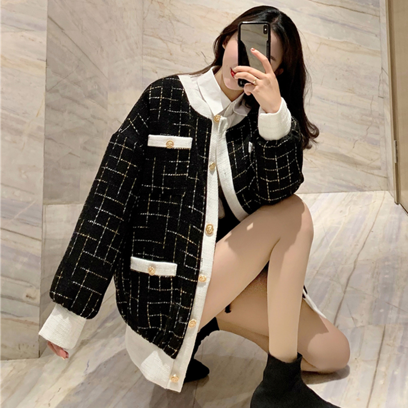 / 2018流行毛呢外套女秋冬裝新款復古赫本格紋大衣加厚開衫休閑上衣