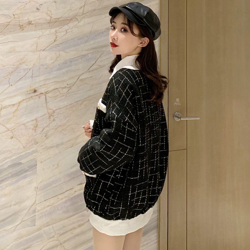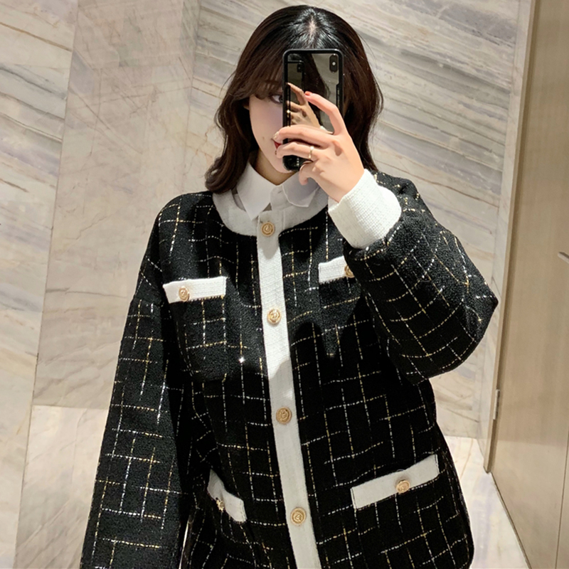 2018流行毛呢外套女秋冬裝新款復古赫本格紋大衣加厚開衫休閑上衣