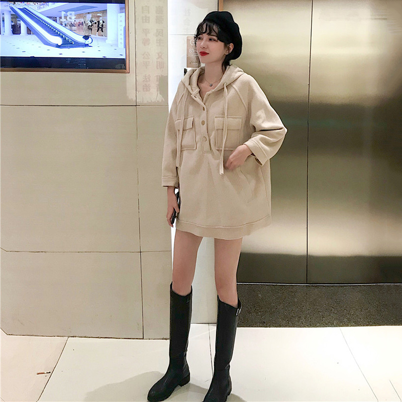 / 港風套頭衛衣女裝秋冬復古羊羔毛外套新款寬松學生長袖連帽上衣潮