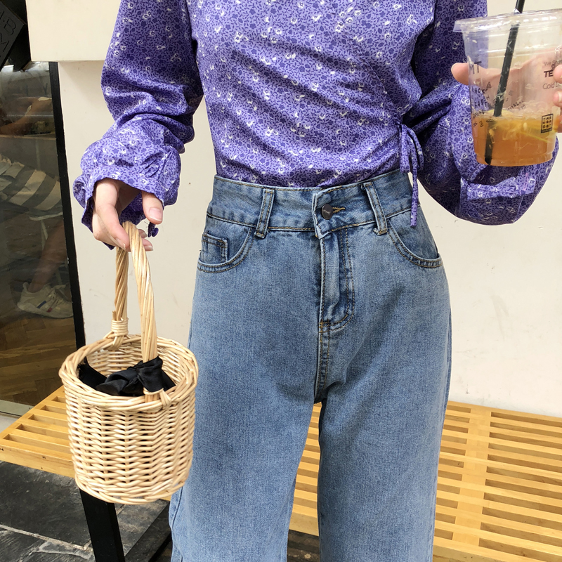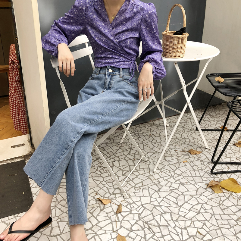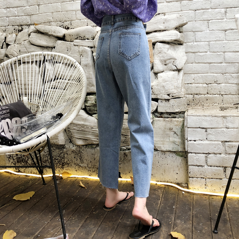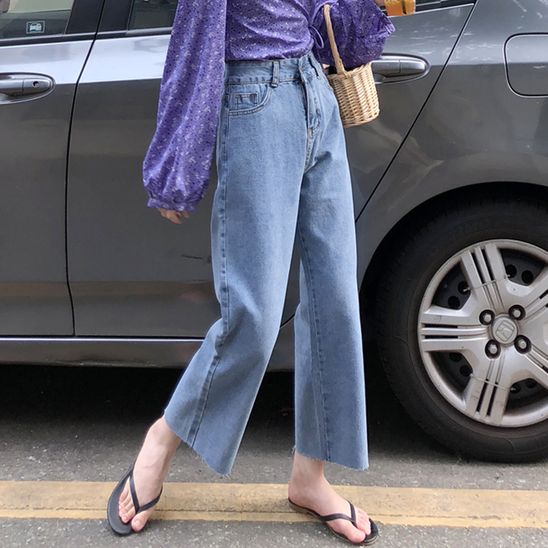 / 休閑褲女2018秋新款女裝韓版高腰水洗做舊牛仔褲微喇闊腿九分褲潮