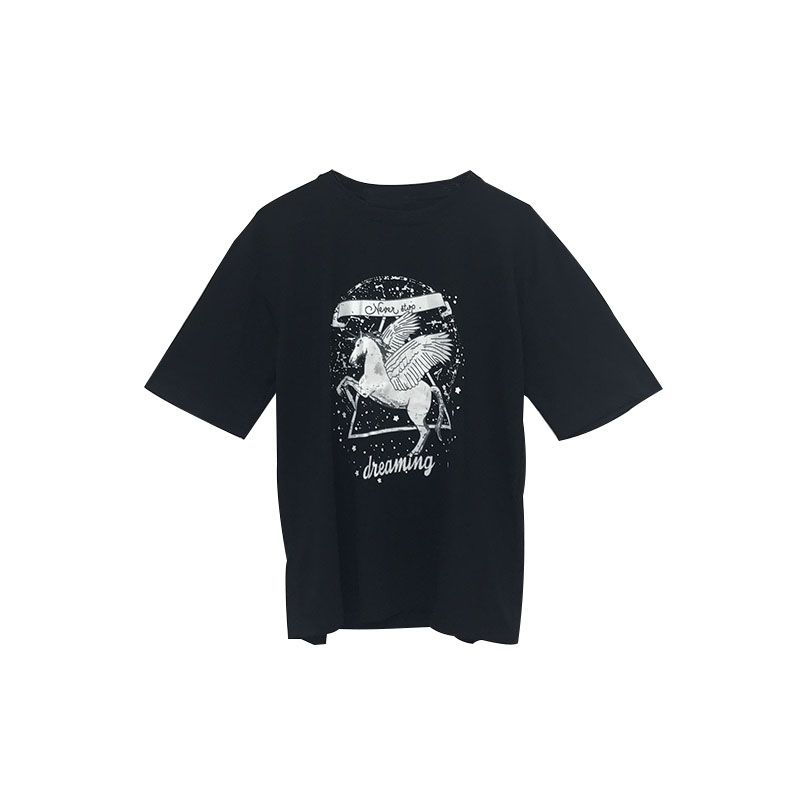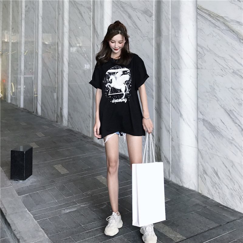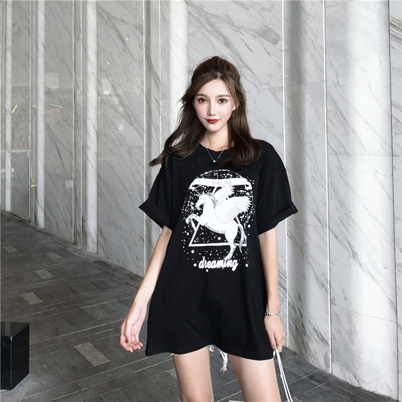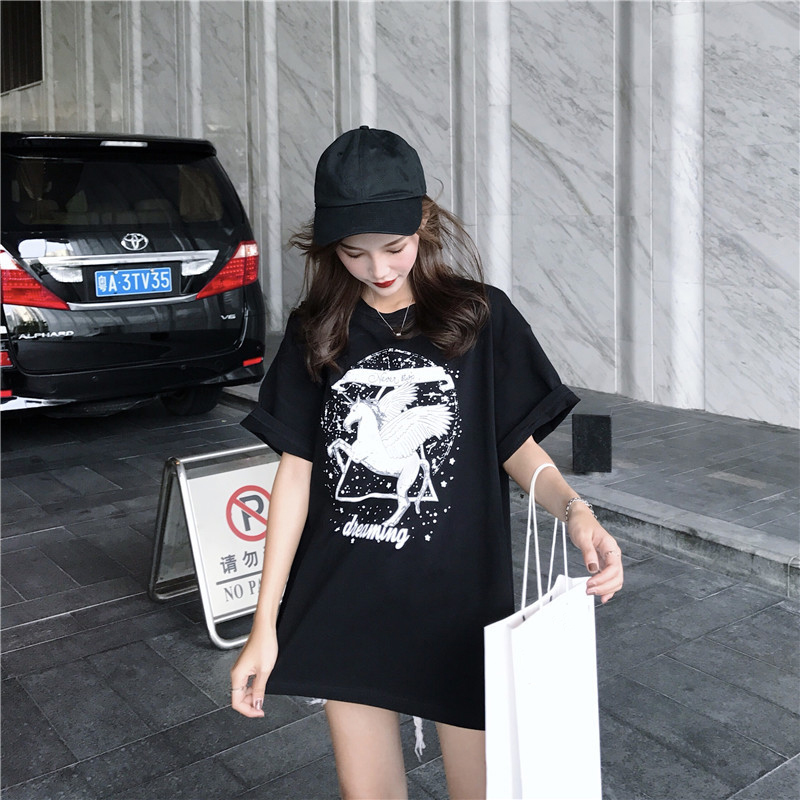 女裝夏裝2018新款女浪漫星點修身顯瘦獨角獸短袖中長款T恤上衣潮