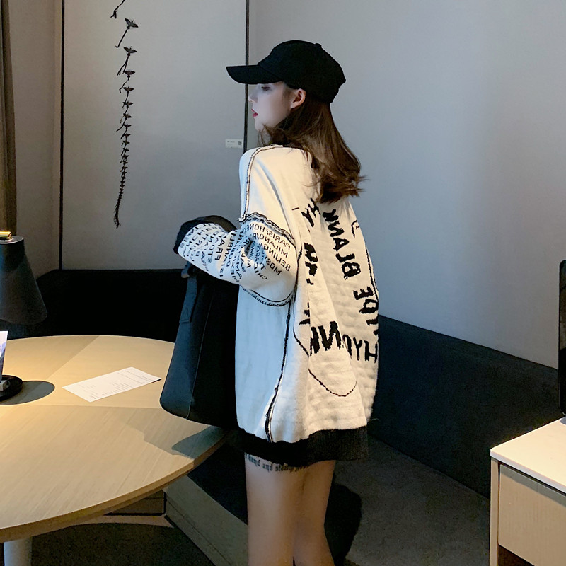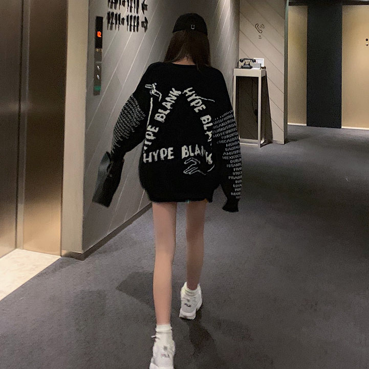 毛衣女2018新款豹紋套頭針織衫慵懶風寬松oversize中長款毛衣女潮