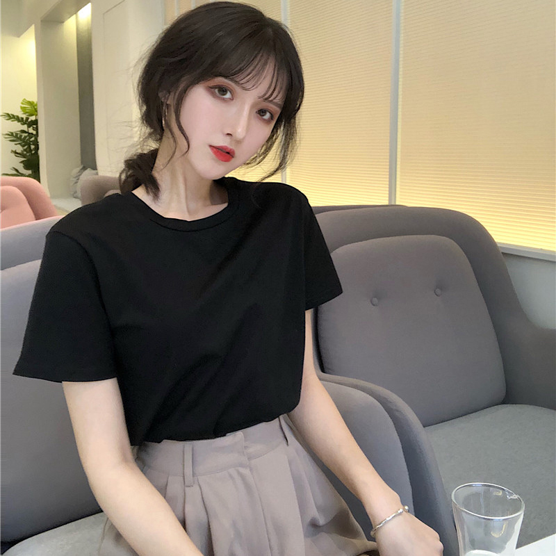 / 秋裝女2018新款基礎款純色圓領百搭短袖T恤女學生簡約顯瘦tee上衣