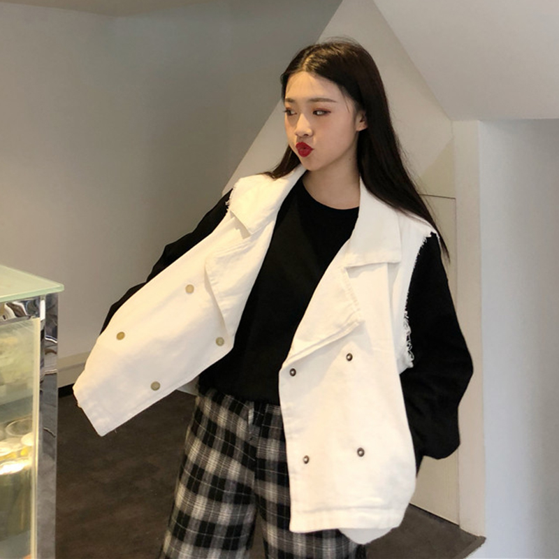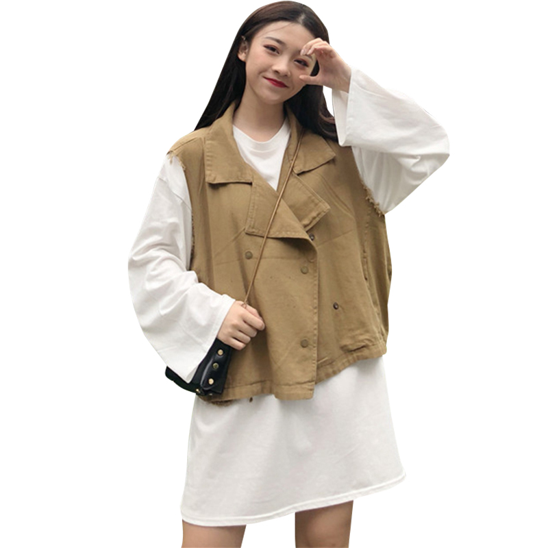 棉馬夾女新款2018韓版秋季牛仔馬甲女春秋款t恤兩件套女寬松外套
