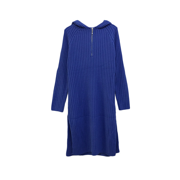 韓國chic風連帽針織衫坑條拉鏈長款網紅套頭毛衣連衣裙女2018新款