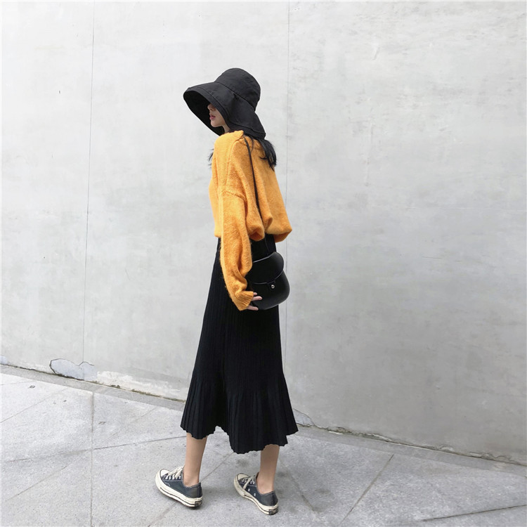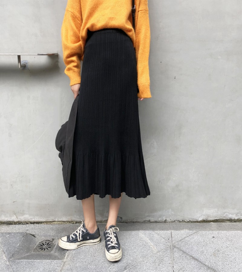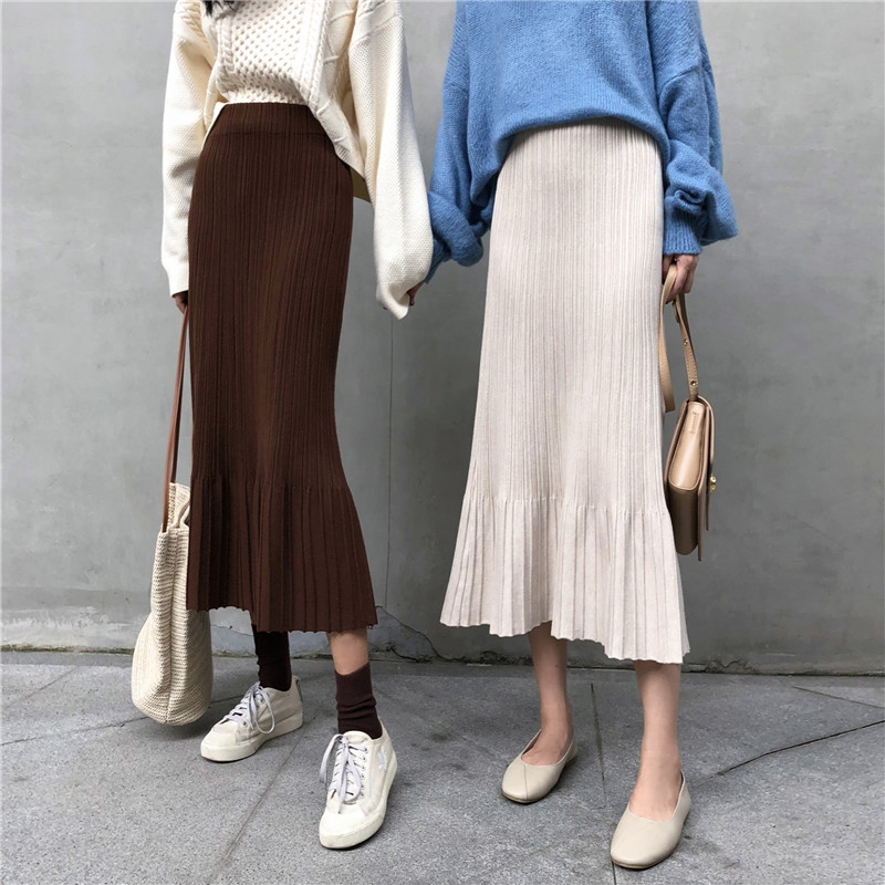 秋裝女2018新款時尚百搭韓版修身顯瘦中長款純色針織魚尾半身裙潮