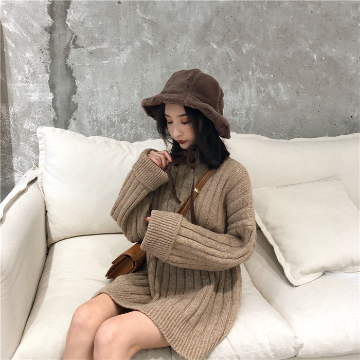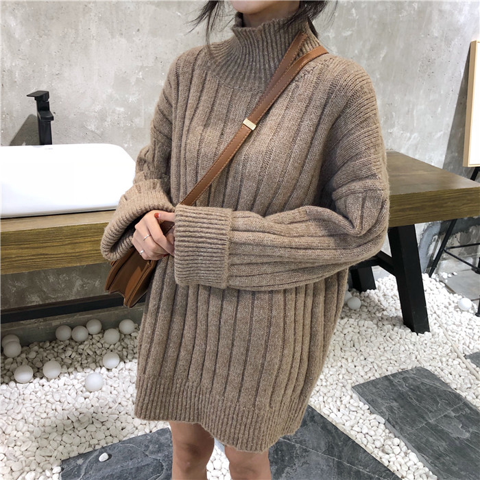 韓系早秋時尚網紅毛衣女2018新款寬松慵懶風加厚高領顯瘦遮臀毛衣