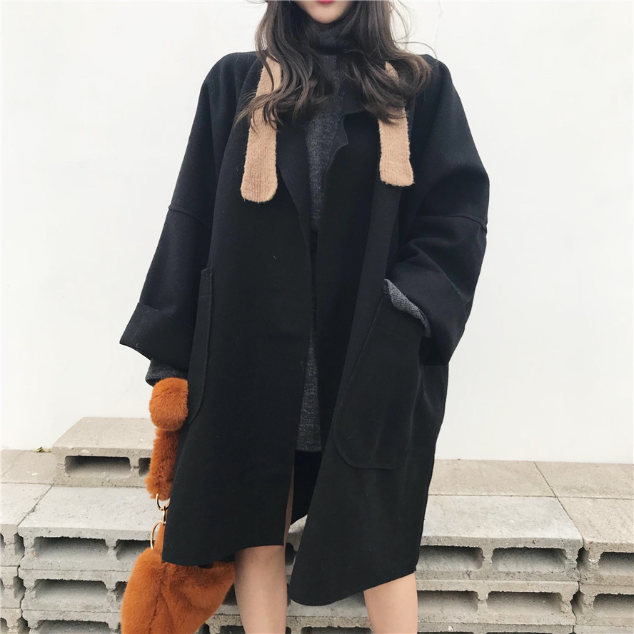 韓版毛呢外套女秋冬大衣女新款2018寬松氣質百搭中長款呢子大衣潮