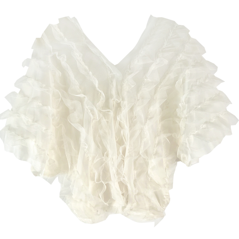 / 夏季女裝新款氣質波浪花邊V領露肩短袖上衣百搭時尚微透雪紡衫女