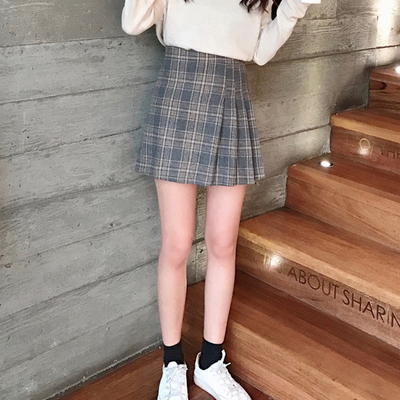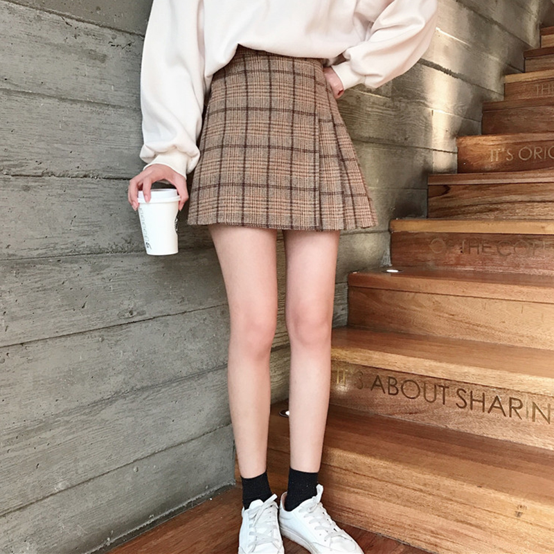 / 秋冬女裝2018新款復古格紋百褶半身裙子學生時尚高腰顯瘦A字短裙