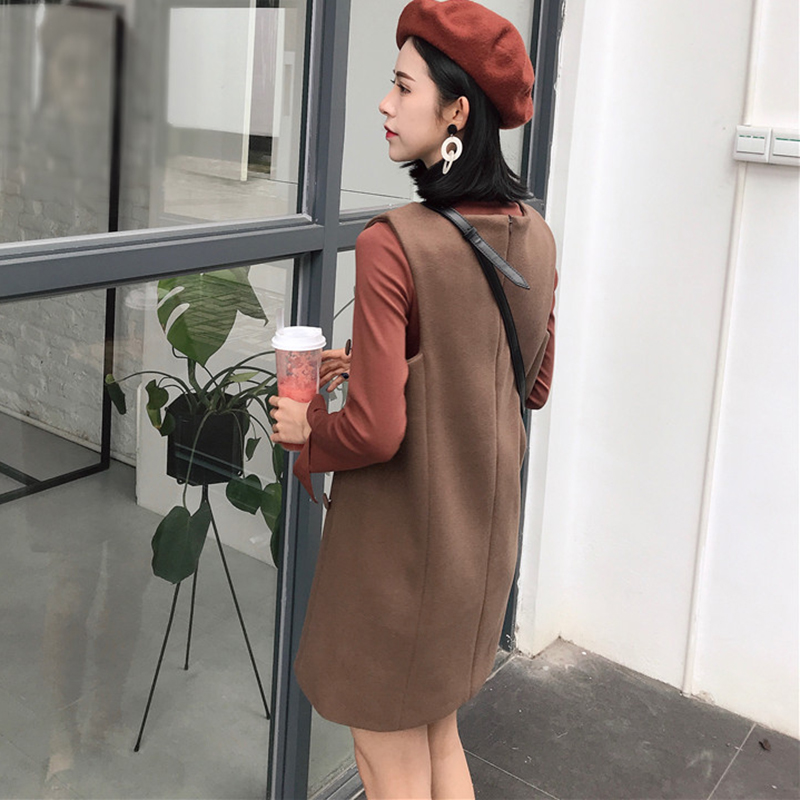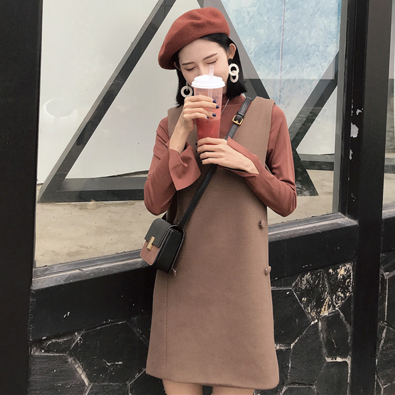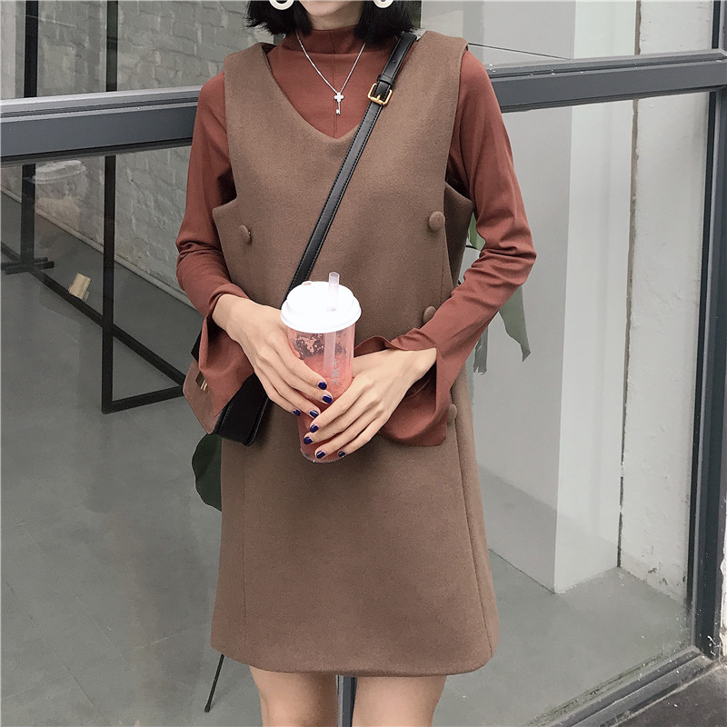 杏色打底衫|磚紅打底衫|咖色背帶裙|杏色背帶裙
