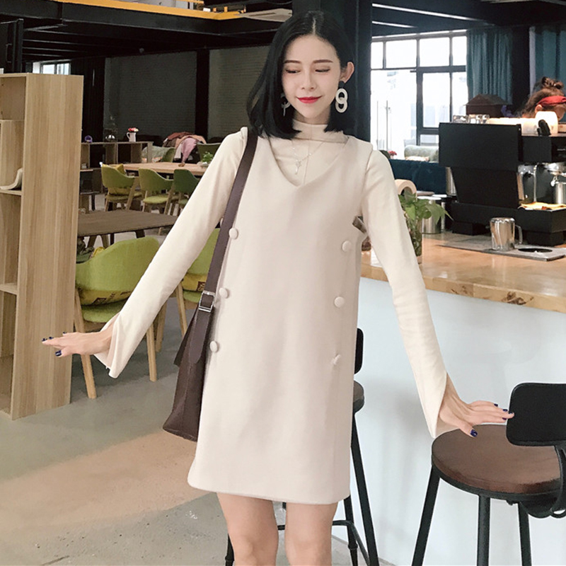 / 御姐套裝女秋冬新款開叉長袖修身打底衫氣質V領毛呢背心連衣裙子