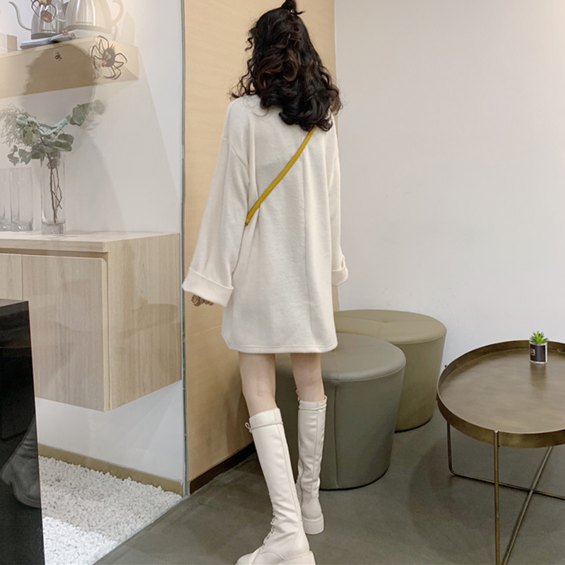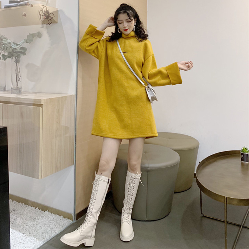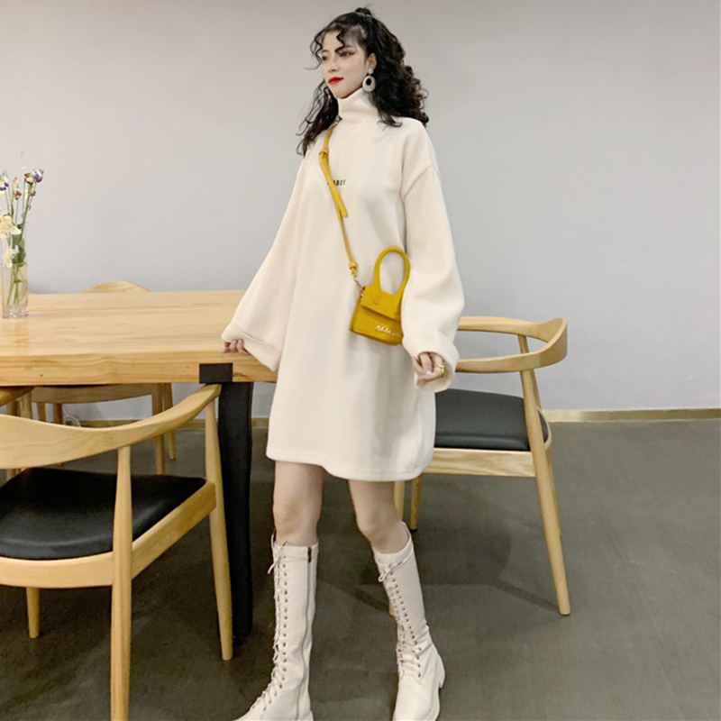 / 高領字母刺繡衛衣2018新款女秋冬裝中長款寬松絨衫學生休閑外套潮