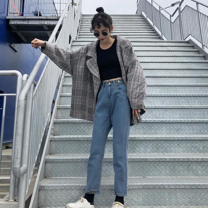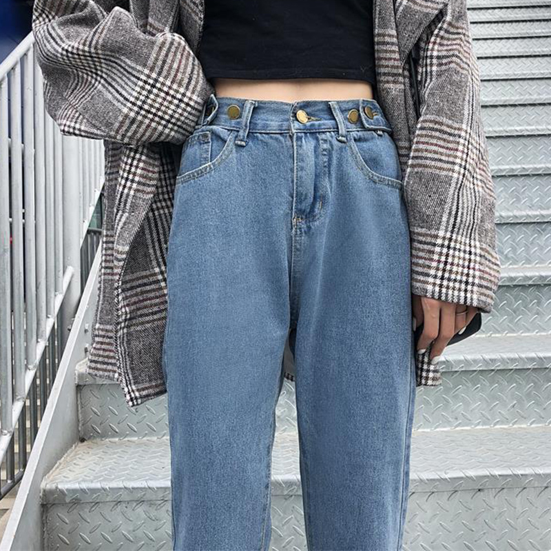 秋冬女裝2018新款高腰顯瘦復古初戀牛仔褲學生休閑寬松哈倫長褲子