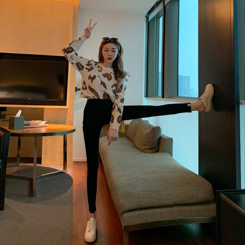 2018新款韓版軟妹針織打底褲女學生灰色長褲修身外穿彈力褲小腳褲