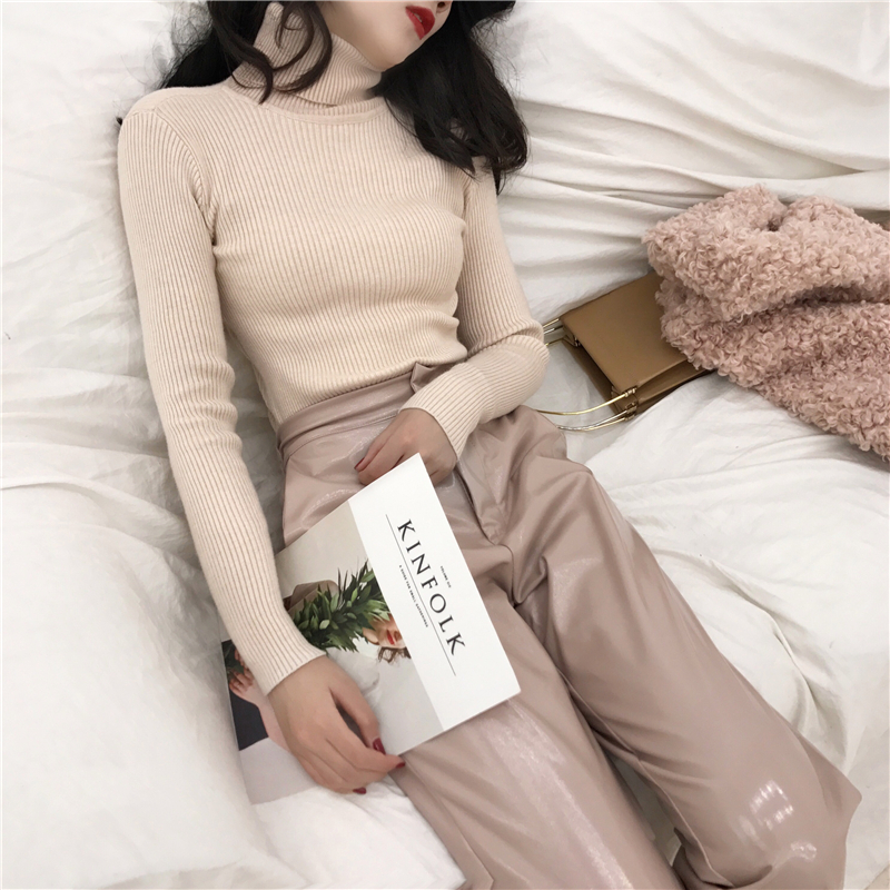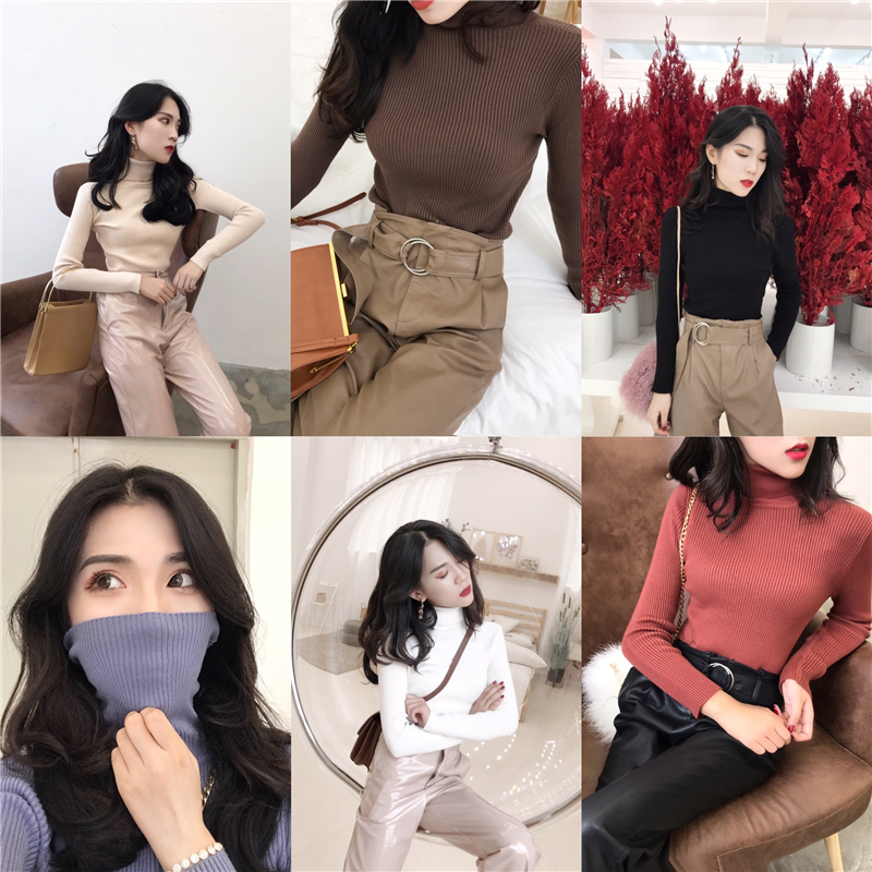 韓版時尚慵懶風毛衣女套頭新款百搭彈力柔軟高領復古長袖針織衫女