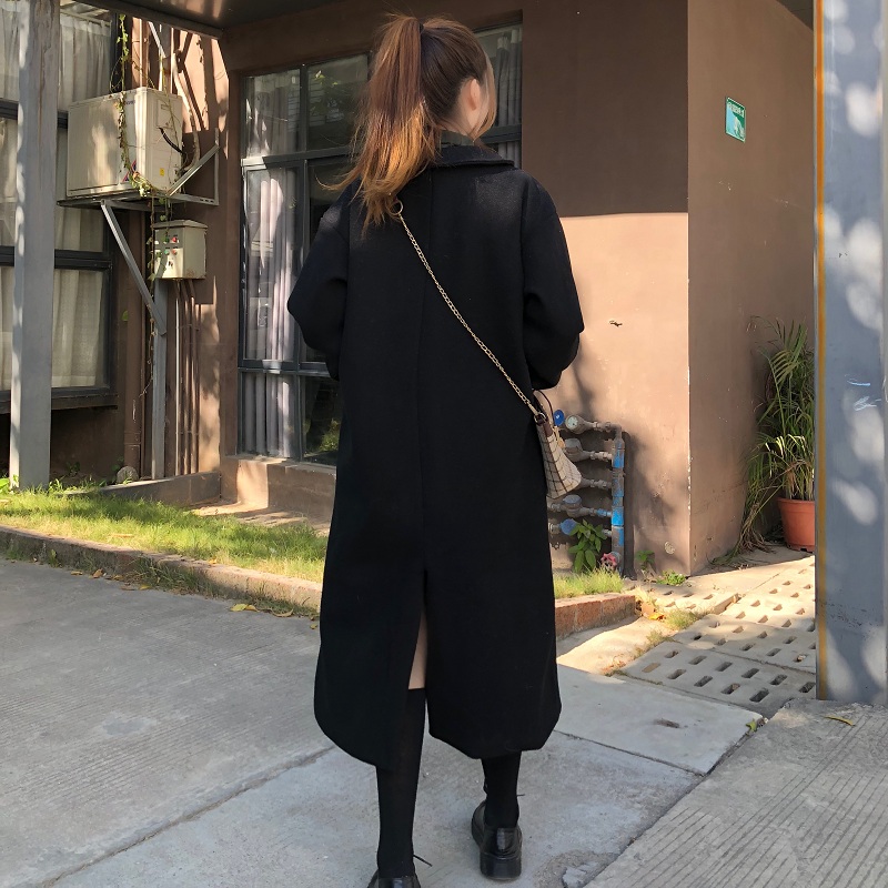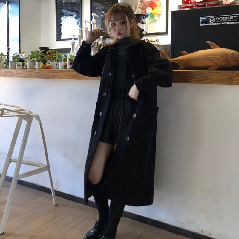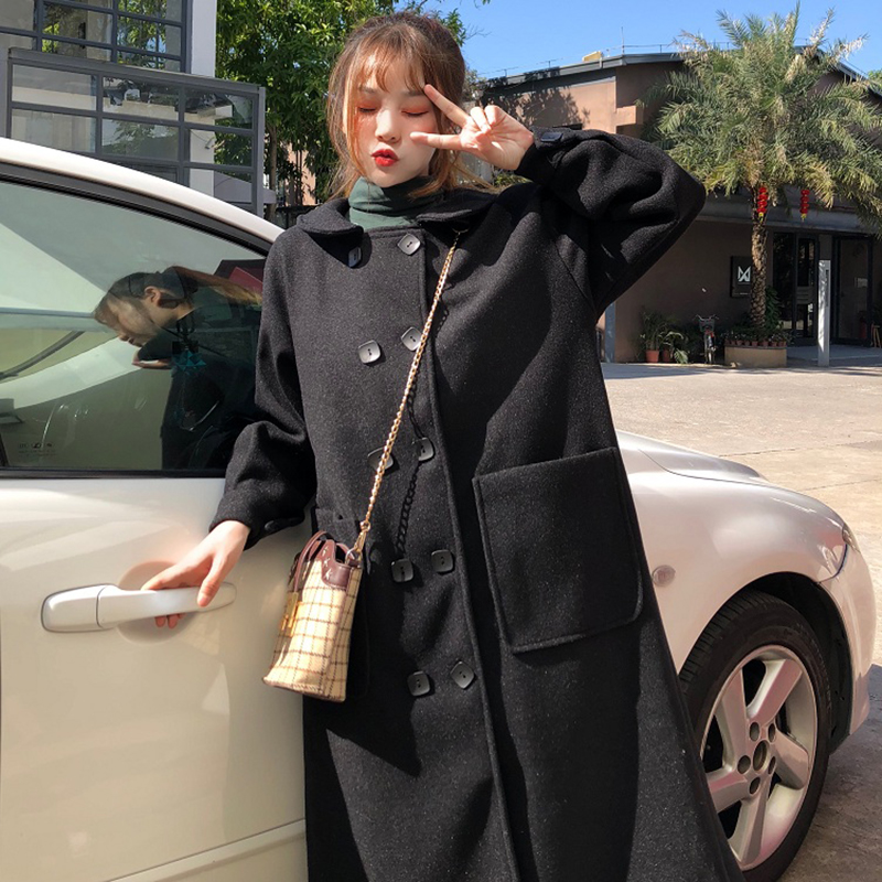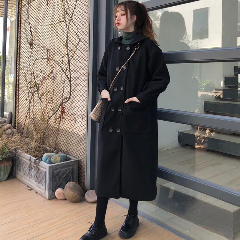 2018流行毛呢外套女秋冬裝新款學生寬松風衣復古黑色加厚呢子大衣