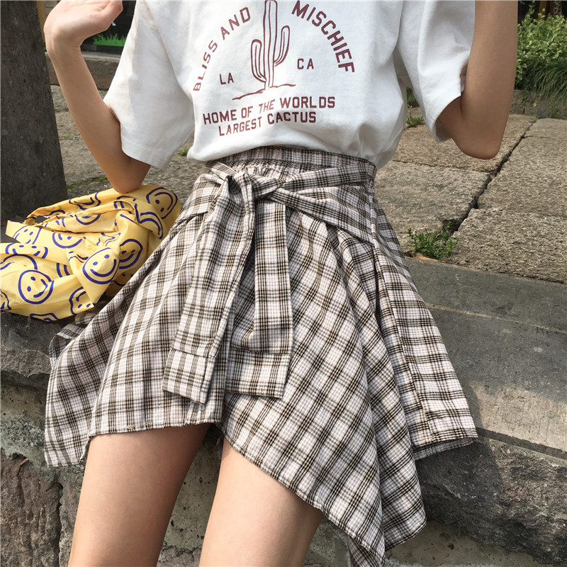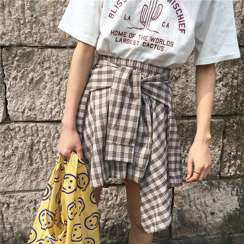 / 夏季新款女裝復古不規則格子高腰修身顯瘦學生百搭A字半身裙短裙