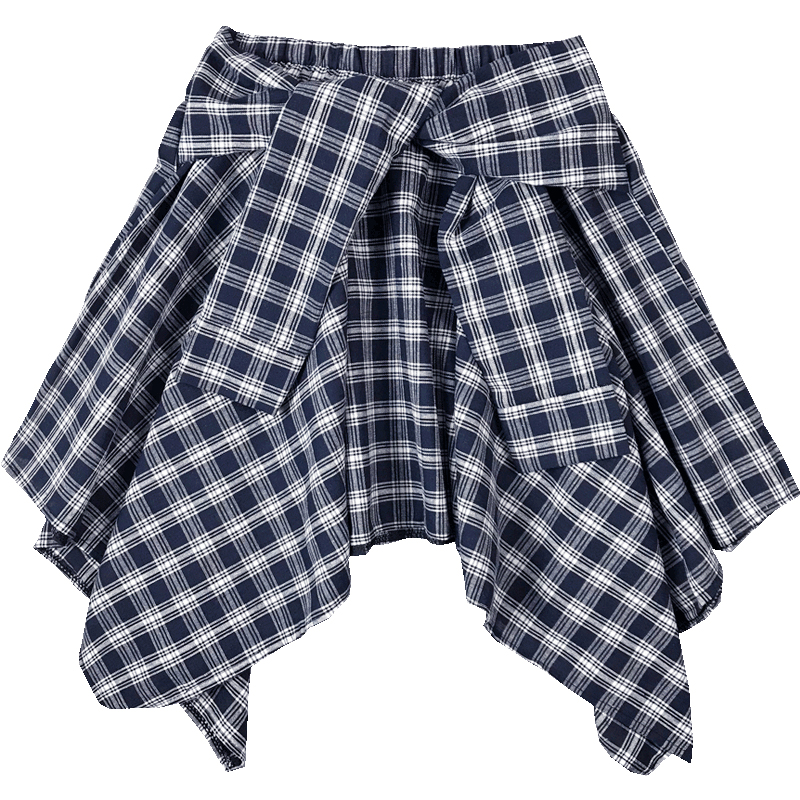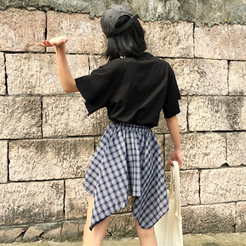 夏季新款女裝復古不規則格子高腰修身顯瘦學生百搭A字半身裙短裙