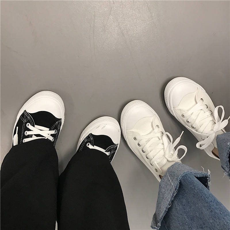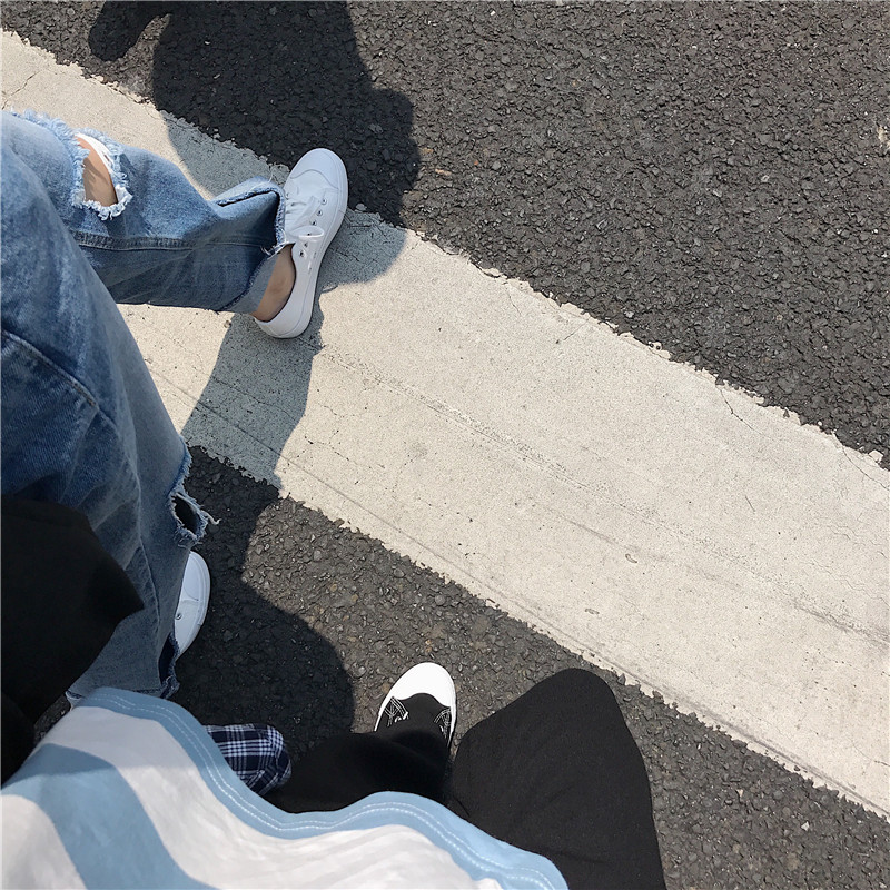 韓版小清新風百搭舒適系帶撞色平底帆布鞋少女氣質簡約低幫鞋潮女