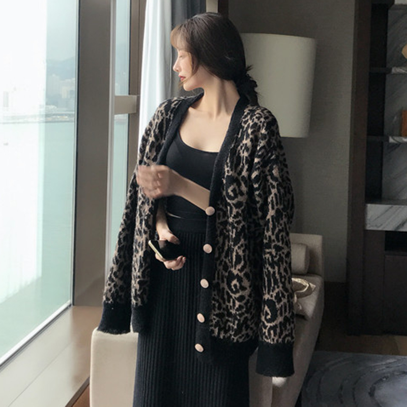 / 慵懶風豹紋針織衫女秋冬裝2018新款學生韓版時尚寬松長袖毛衣外套
