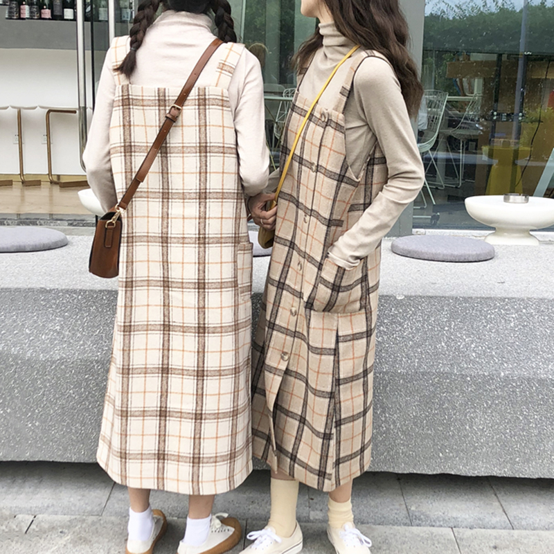 淺底咖啡格子|卡其底黑色格子|杏色打底衫|卡其打底衫