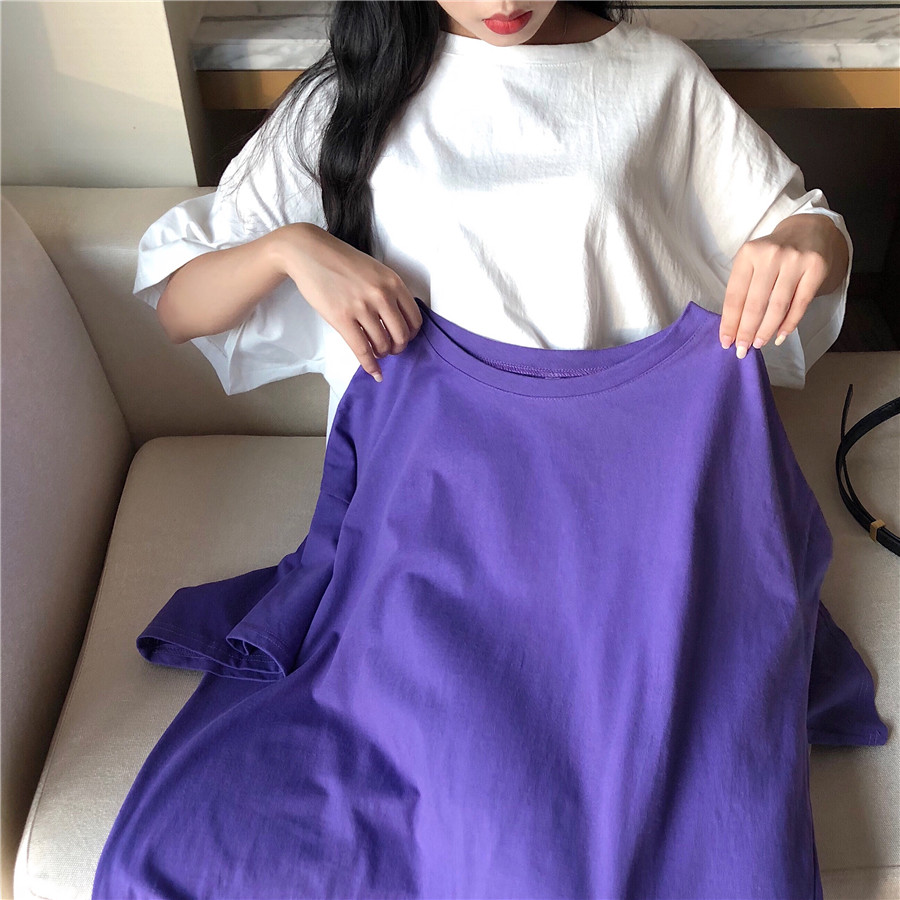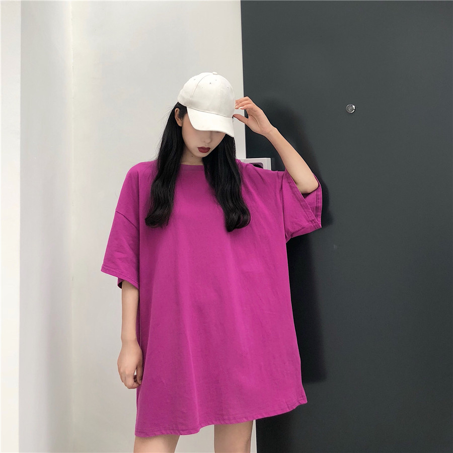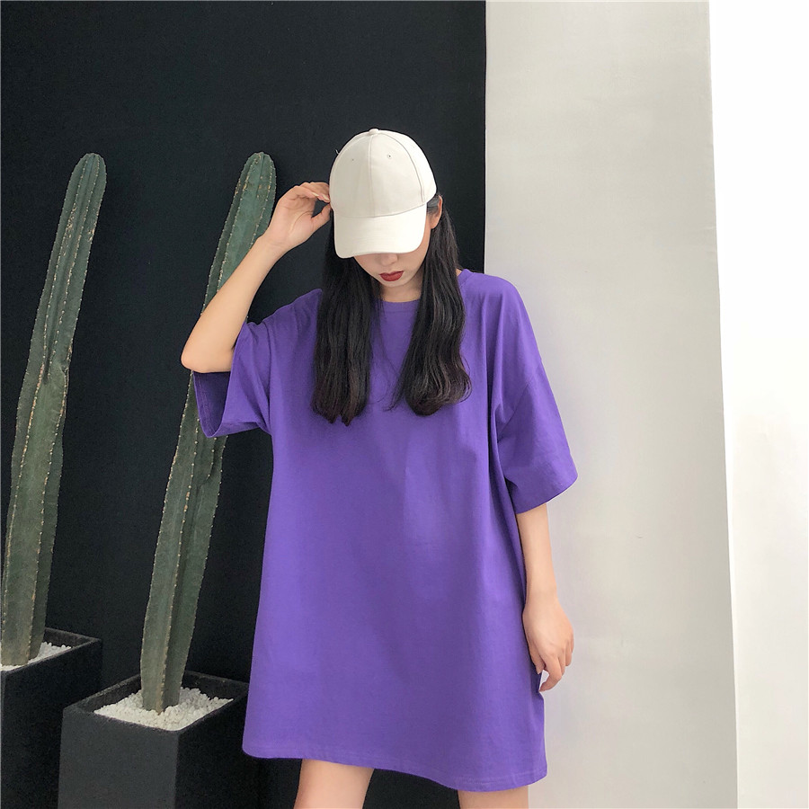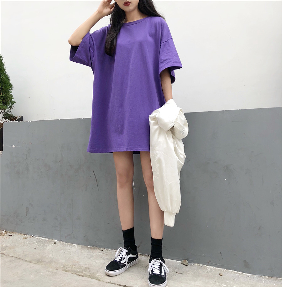 秋裝女2018新款慵懶百搭寬松圓領套頭中長款顯瘦短袖T恤式連衣裙