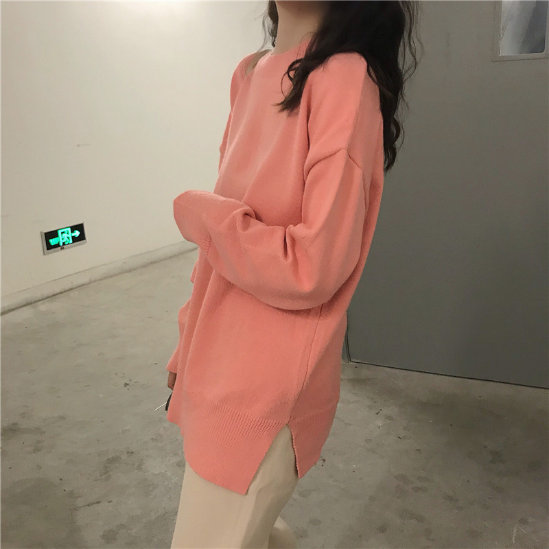 / 韓版chic甜美風粉色寬松圓領毛衣+顯瘦百搭純色毛呢闊腿褲兩件套