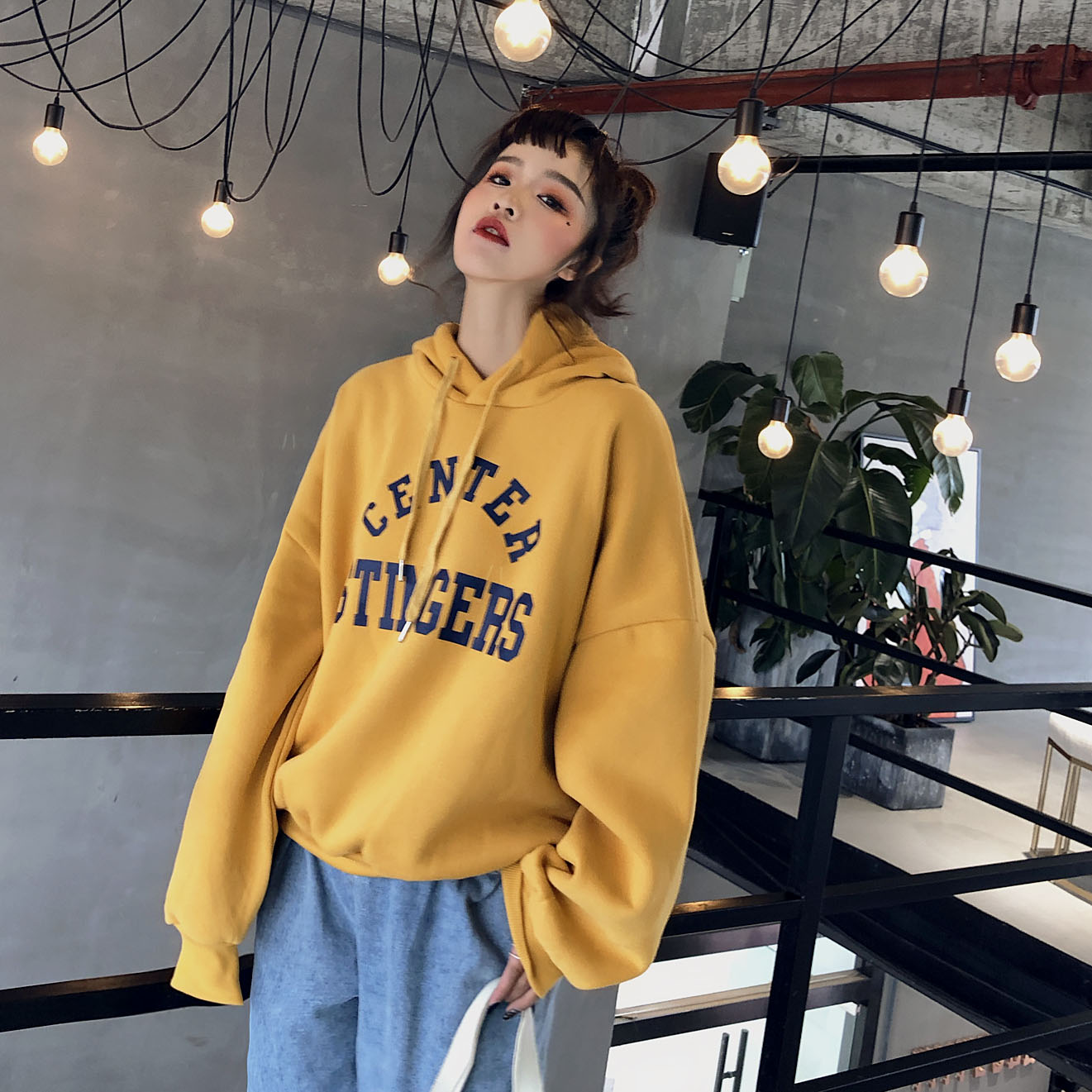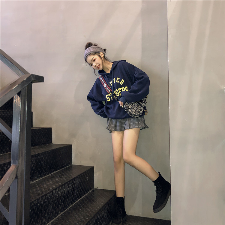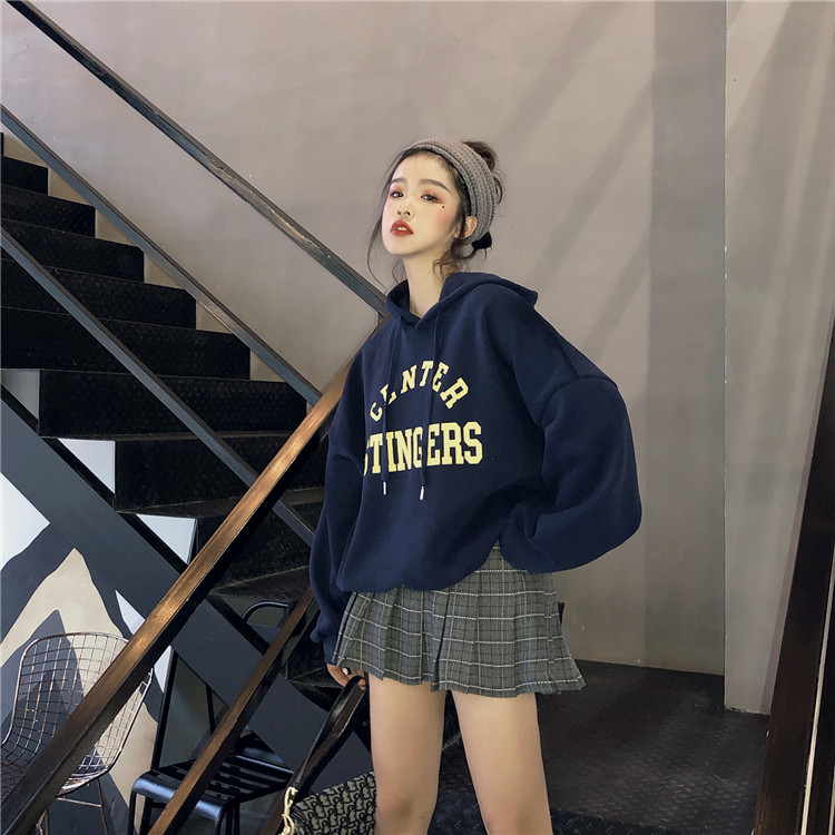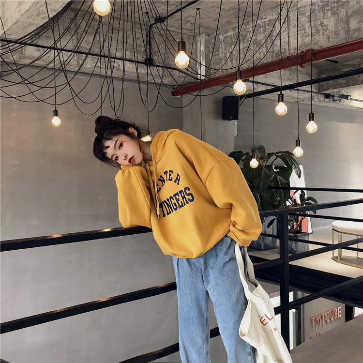 / 韓國復古chic印花加絨加厚字母連帽衛衣女2018新款學院風寬松上衣