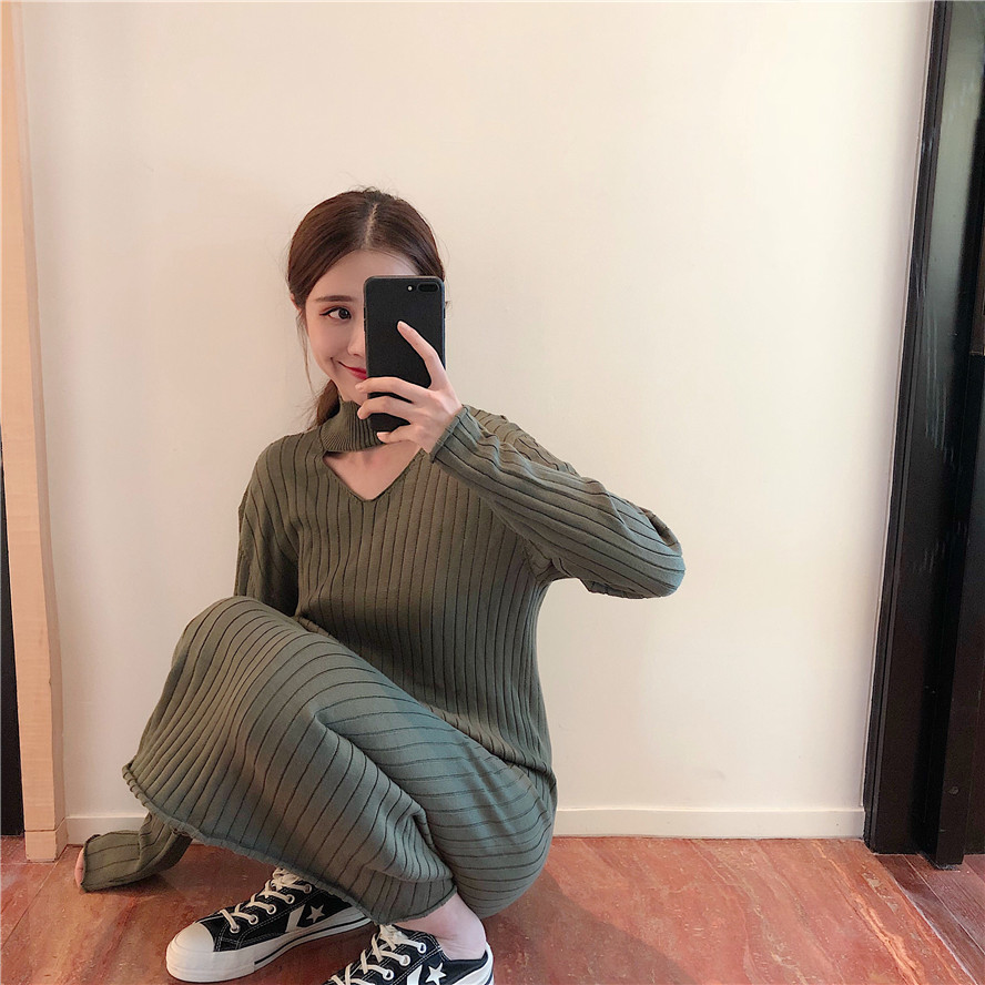 韓版女秋裝2018新款裙子寬松長袖針織裙初秋溫柔風連衣裙毛衣裙潮