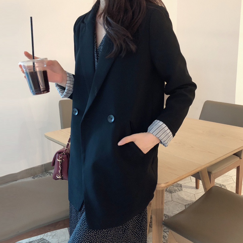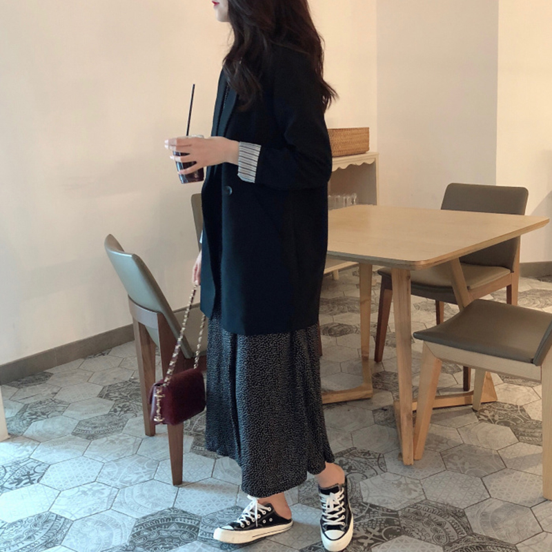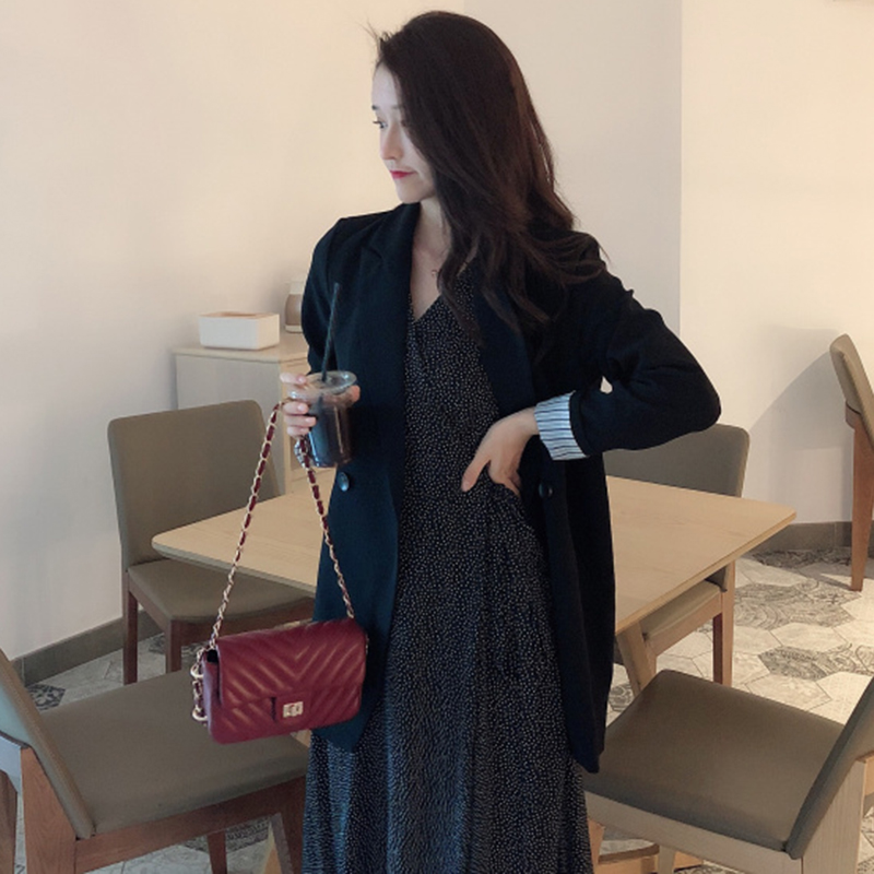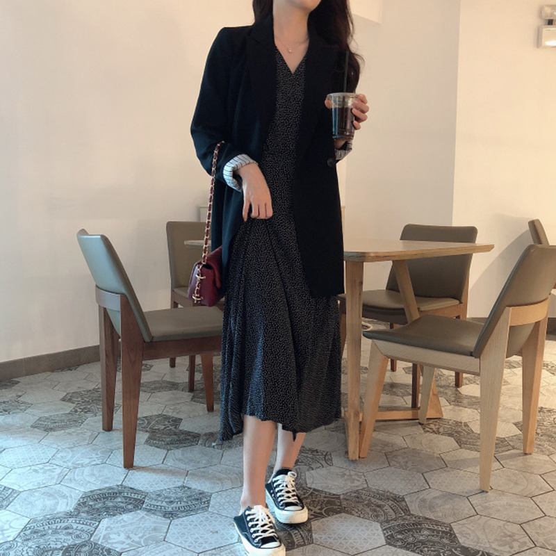 / 御姐洋氣套裝女秋冬新款氣質黑色西裝外套復古風高腰波點連衣裙子