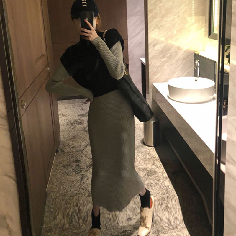 馬海毛網紅毛衣女2018新款針織開衫外套冷淡風針織吊帶連衣裙套裝