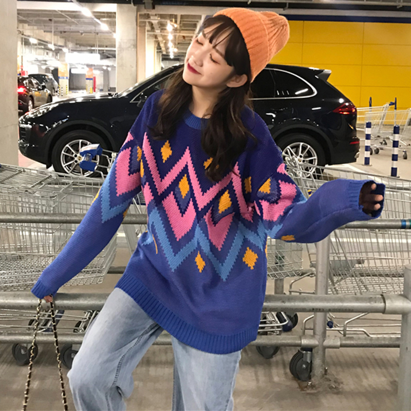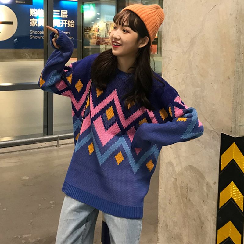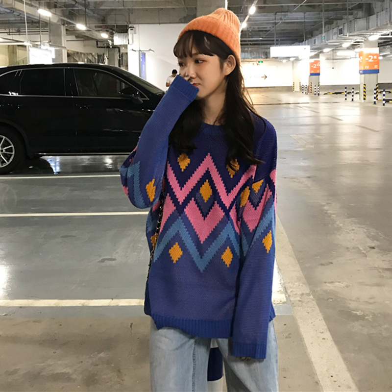 慵懶風菱格毛衣外套女秋冬裝2018新款學生韓版時尚寬松針織衫上衣