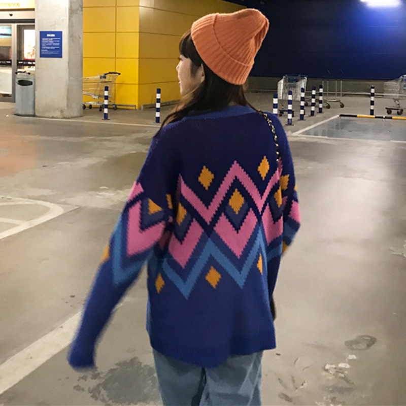 / 慵懶風菱格毛衣外套女秋冬裝2018新款學生韓版時尚寬松針織衫上衣
