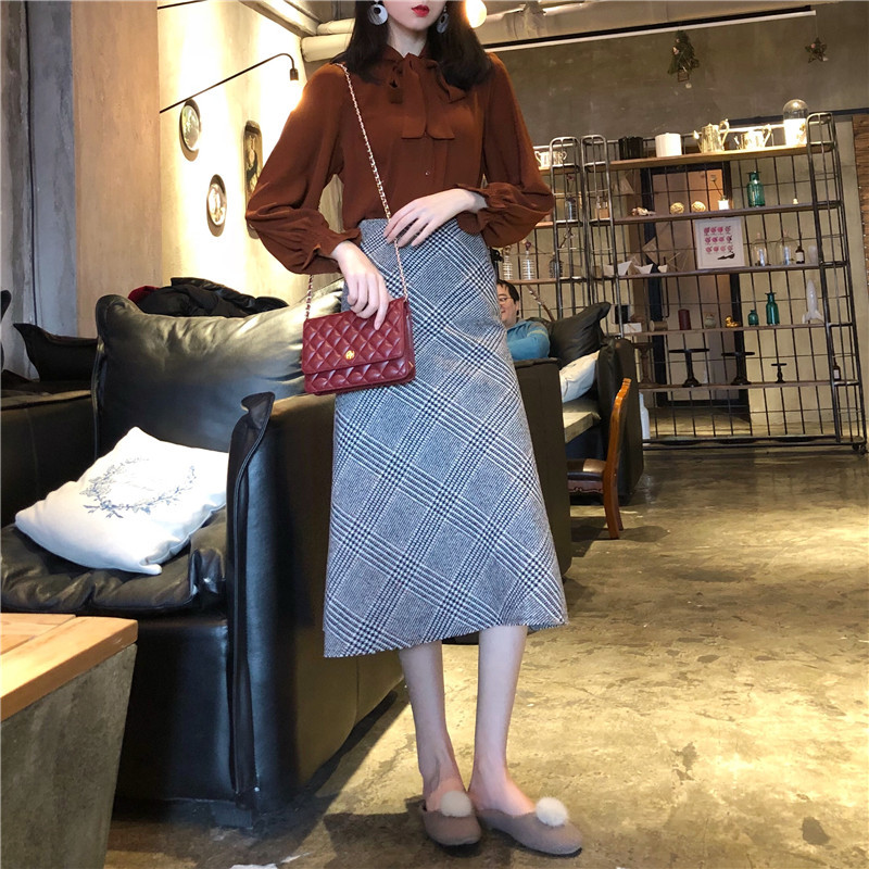 / 復古格紋秋裝女2018新款高腰魚尾裙百搭顯瘦中長款修身包臀半身裙