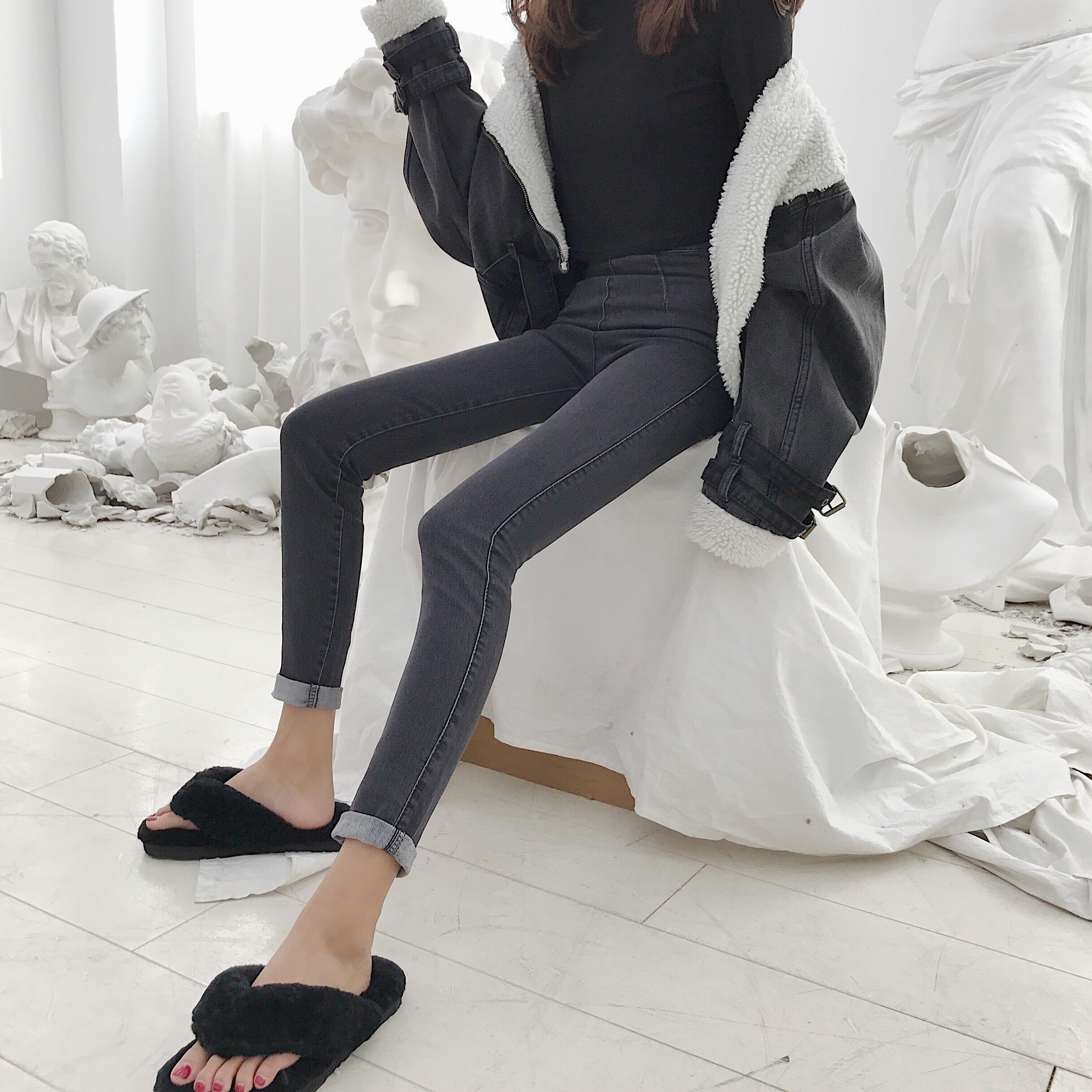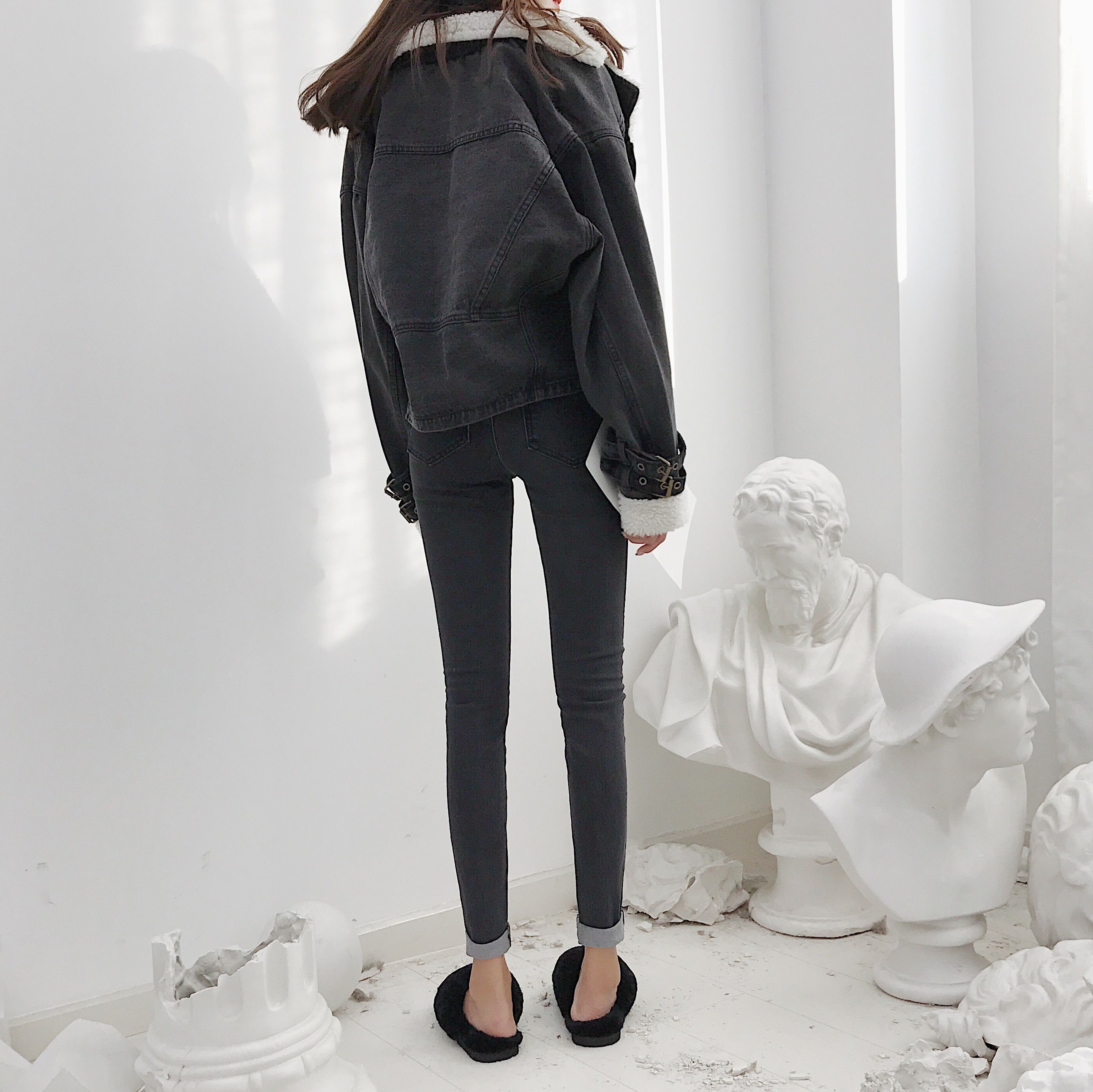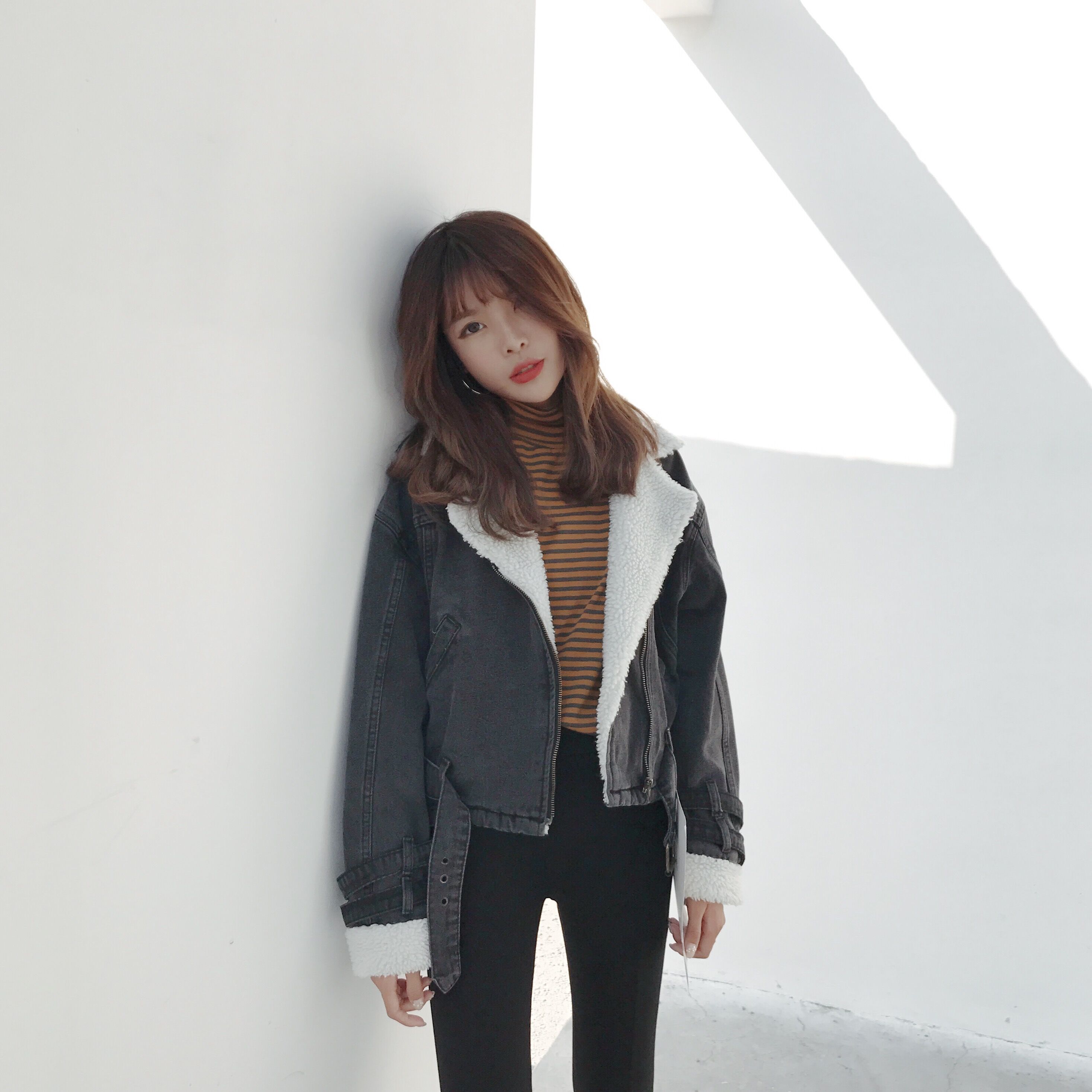 韓國氣質拼接羊羔毛牛仔外套女秋冬2018新款百搭寬松機車長袖上衣