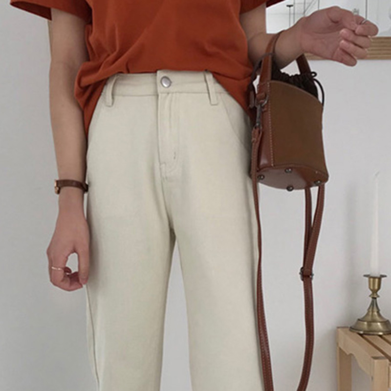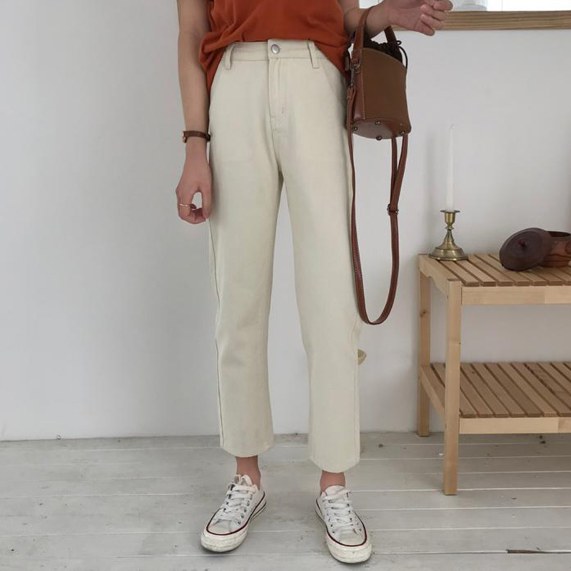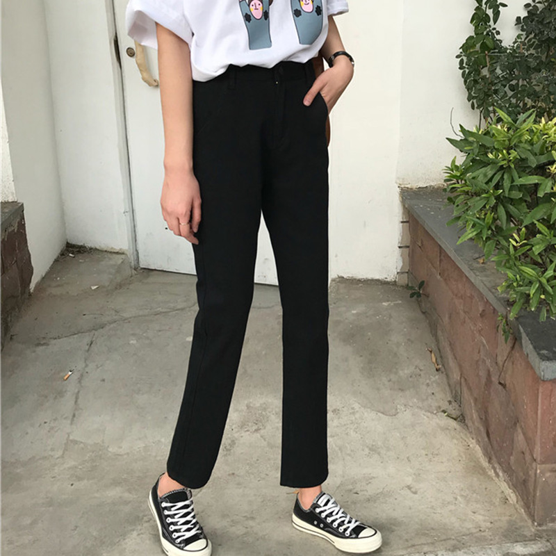 / 秋裝女裝韓版高腰寬松學生休閑直筒九分褲顯瘦黑色牛仔褲闊腿長褲