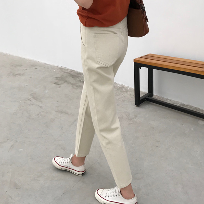 秋裝女裝韓版高腰寬松學生休閑直筒九分褲顯瘦黑色牛仔褲闊腿長褲