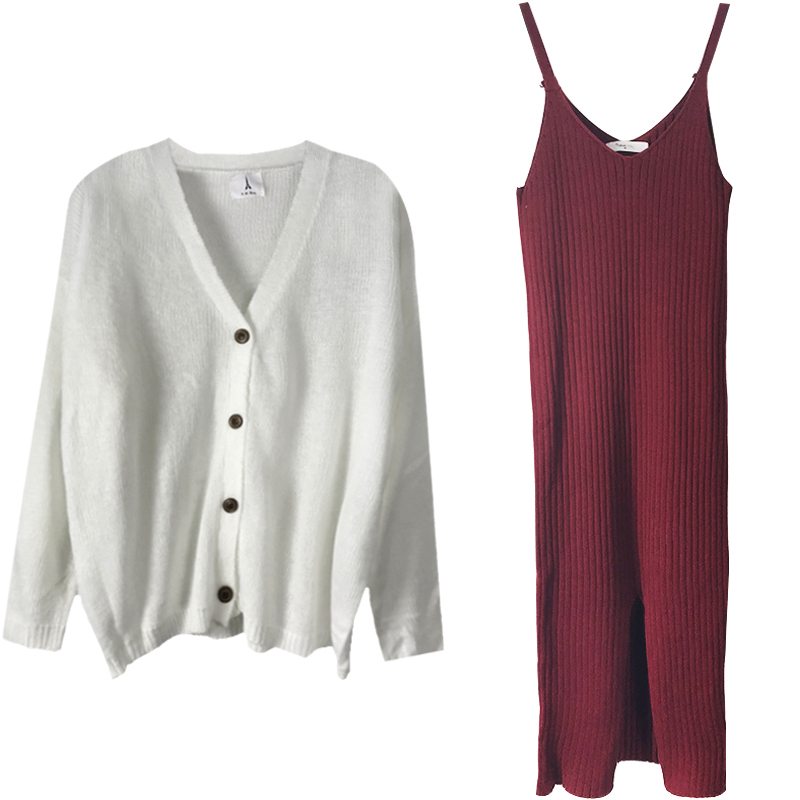 紅色毛衣|白色毛衣|黑色吊帶裙|酒紅吊帶裙