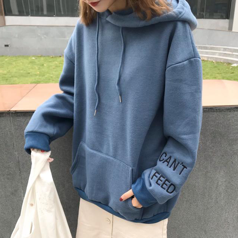 / 韓版chic加絨連帽衛衣秋冬2018新款女裝慵懶寬松長袖刺繡上衣外套