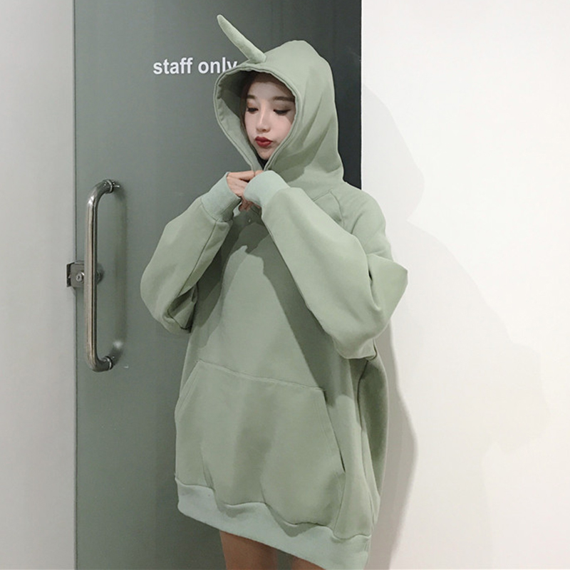 / 怪味少女可愛加絨連帽衛衣秋冬2018新款女裝學生慵懶寬松外套上衣