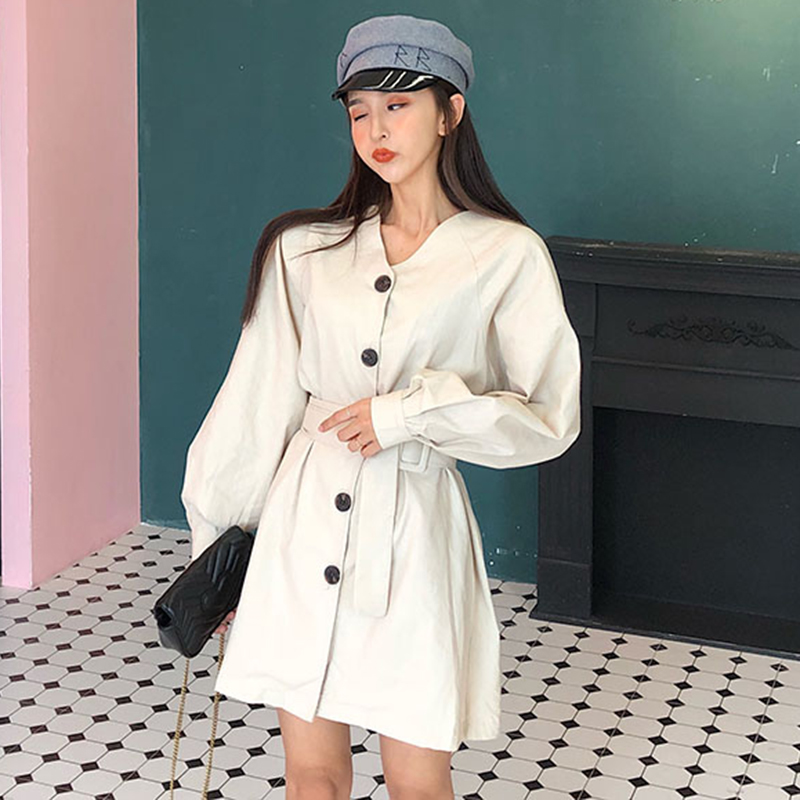 / 收腰顯瘦寬松長袖風衣女秋冬裝新款中長款白色開衫學生時尚外套潮