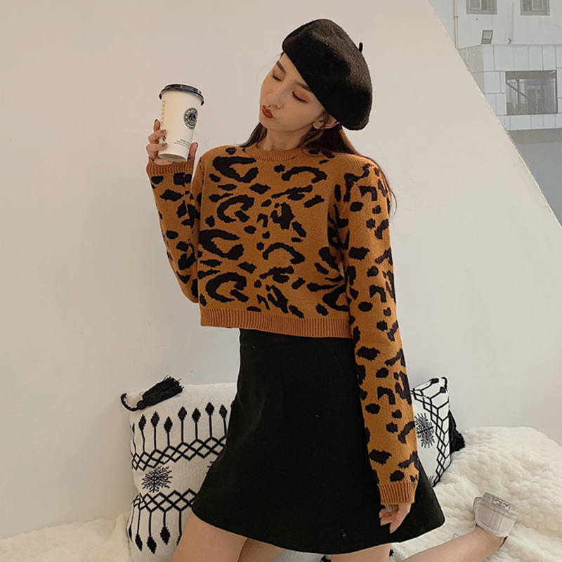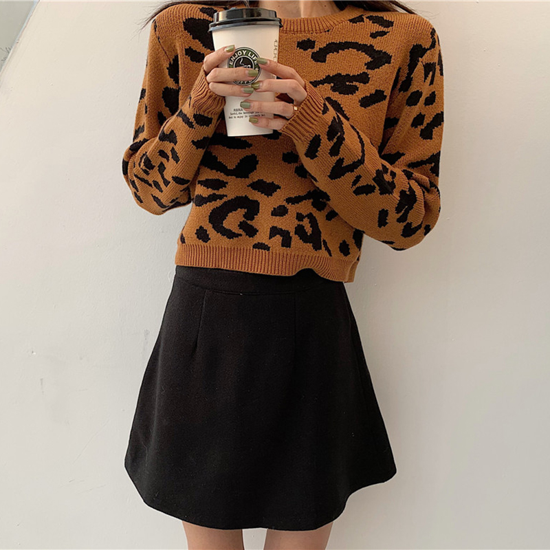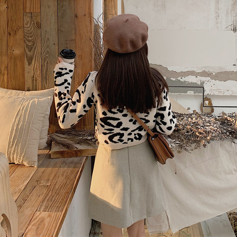/ 毛衣配裙子兩件套冬裝新款時尚豹紋套頭針織衫高腰顯瘦毛呢半身裙